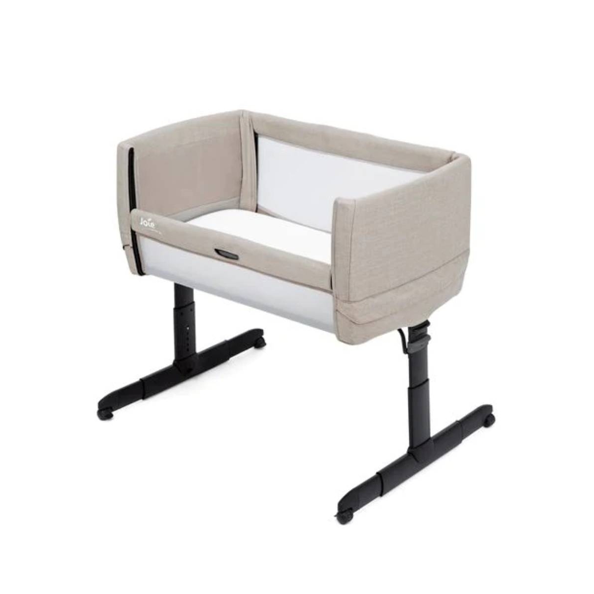 Meet roomie go Sleeping safely side by side without sharing a bed makes parent-baby bonding a dream. Now imagine that everywhere you go, your little one snugly in arm?s reach, you can easily feed, cuddle, soothe or simply stare at that sweet face from the comfort of any bed. Compact and travel ready – Simple compact fold that can be completed in mere seconds allows for easy storage around the house or travel ready with the included travel bag Lift and lower side – The sliding side panel lifts and lowers with just one hand, helping you answer those midnight wakeup calls smoothly even when half asleep. Slumber soft mattress – The comfortably cushioned yet firm mattress comes included and is mesh covered so you and baby can both breathe easy all night long FEATURES: Folds in mere seconds to create compact storage or take with you in the included travel bag Sliding side panel lifts and lowers with just one hand 5 height adjustments measure up to nearly any sized bed Four lockable wheels make moving the crib easy and are rubber-covered to keep your floor scratch free Woven fabrics are wipeable for easy cleaning Secures to your bed with a simple strap and clip attachment Washable mattress cover removes in a snap for easy cleaning Compatible with organic sheet (sold separately) Allows you to sleep closely side by side without sharing a bed ? Comfortably cushioned yet firm mattress comes included and is mesh covered ? Soothing tilt gently inclines to help your little one comfortably digest their bedtime snack ? Double mesh windows on both sides provide plenty of ventilation Rounded cocoon shape with soft padded sides for extra comfort and protection 2 year Warranty DIMENSIONS: L90. 3cm x W68. 5cm x H14. 8-82. 2cm Weight 9. 5kg