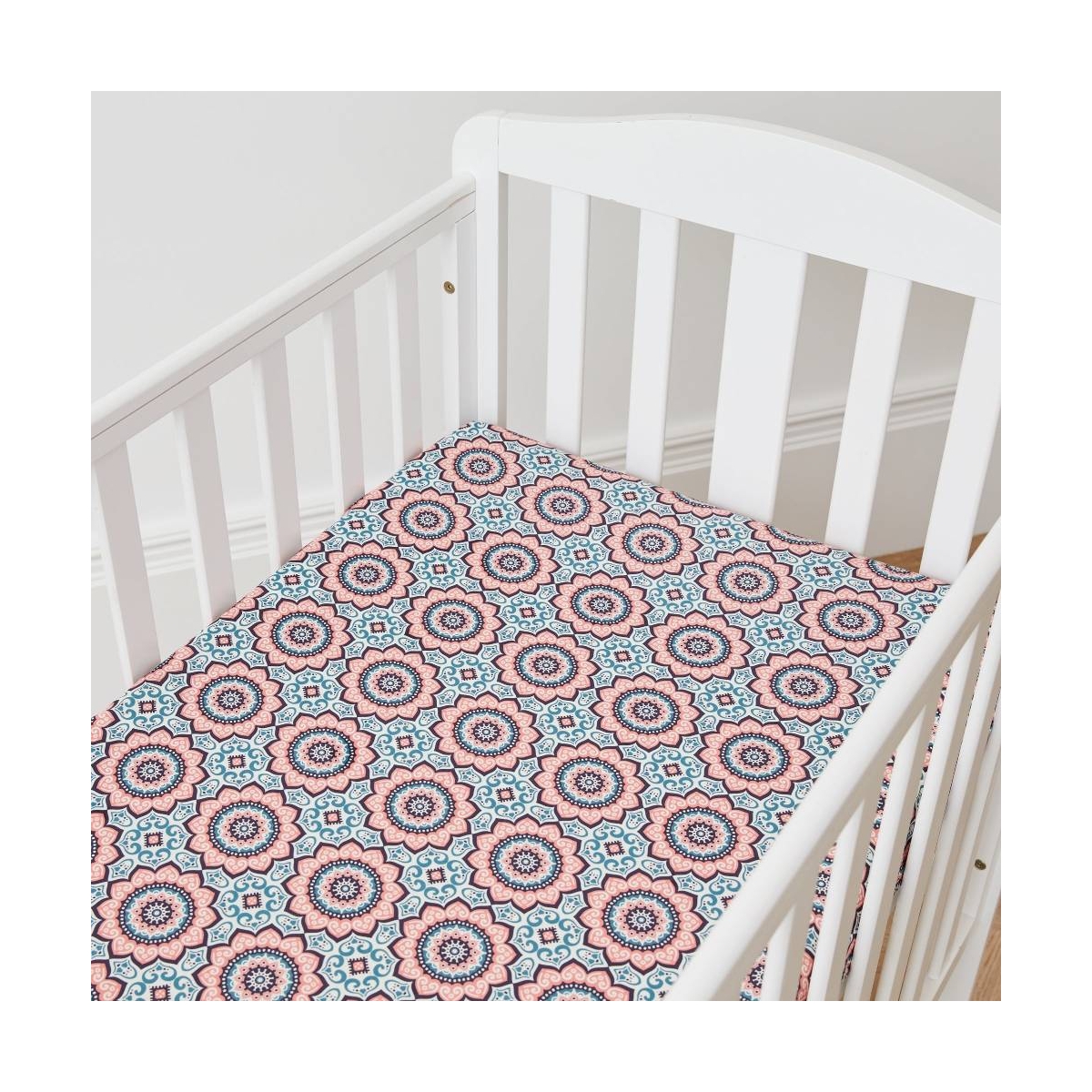 Our Ankara collection features a lovely contemporary eastern inspired motif design with a global feel to it. Our gorgeous colourful design is decorated with a repeated vibrant pattern in shades of coral pink and teal blue, made only from 100% certified organic cotton. Our Ankara fitted sheets conveniently come as a 2-pack; including one repeated motif pattern design and a matching coral colour style. All of our fitted sheets are available in a crib, cot and cot bed size, so there?s no need to change your nursery theme as your little one progresses from their baby crib to their very first toddler bed. FEATURES: Conveniently sold as a pack-of-2 Includes 1 printed design and 1 colourful sheet Sustainably made using 100% organic cotton Premium quality, 200 thread count Machine washable & tumble dry