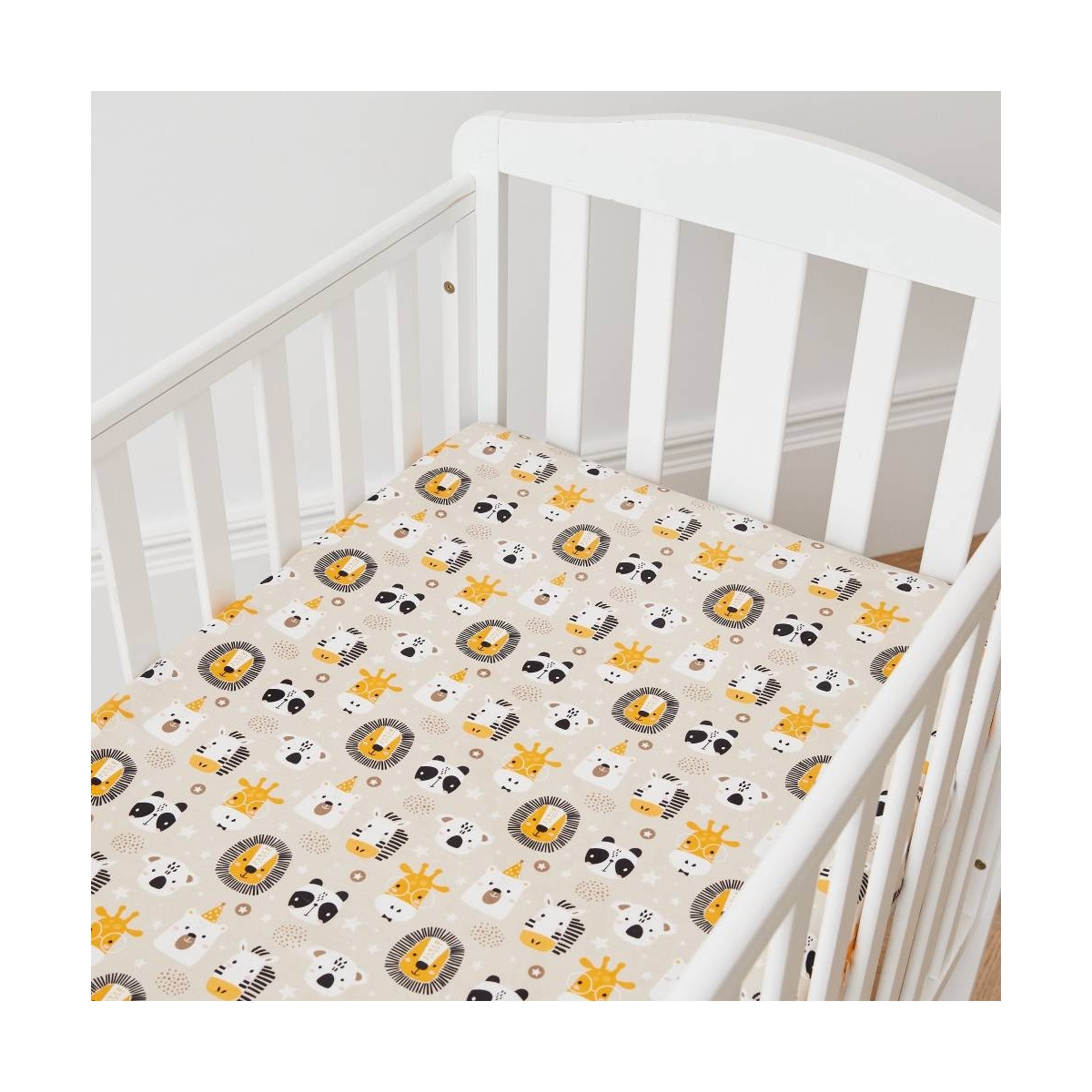 Let’s create an animal paradise with our wonderful Wildlife collection. This fun and stylish collection features giraffes, lions and zebras against a fawn background, and is made from only 100% certified organic cotton. Our Wildlife fitted sheets conveniently come as a 2-pack; including one playful animal design and a matching fawn colour style. All of our fitted sheets are available in a crib, cot and cot bed size, so there?s no need to change your nursery theme as your little one progresses from their baby crib to their very first toddler bed. FEATURES: Conveniently sold as a pack-of-2 Includes 1 printed design and 1 colourful sheet Sustainably made using 100% organic cotton Premium quality, 200 thread count Machine washable & tumble dry