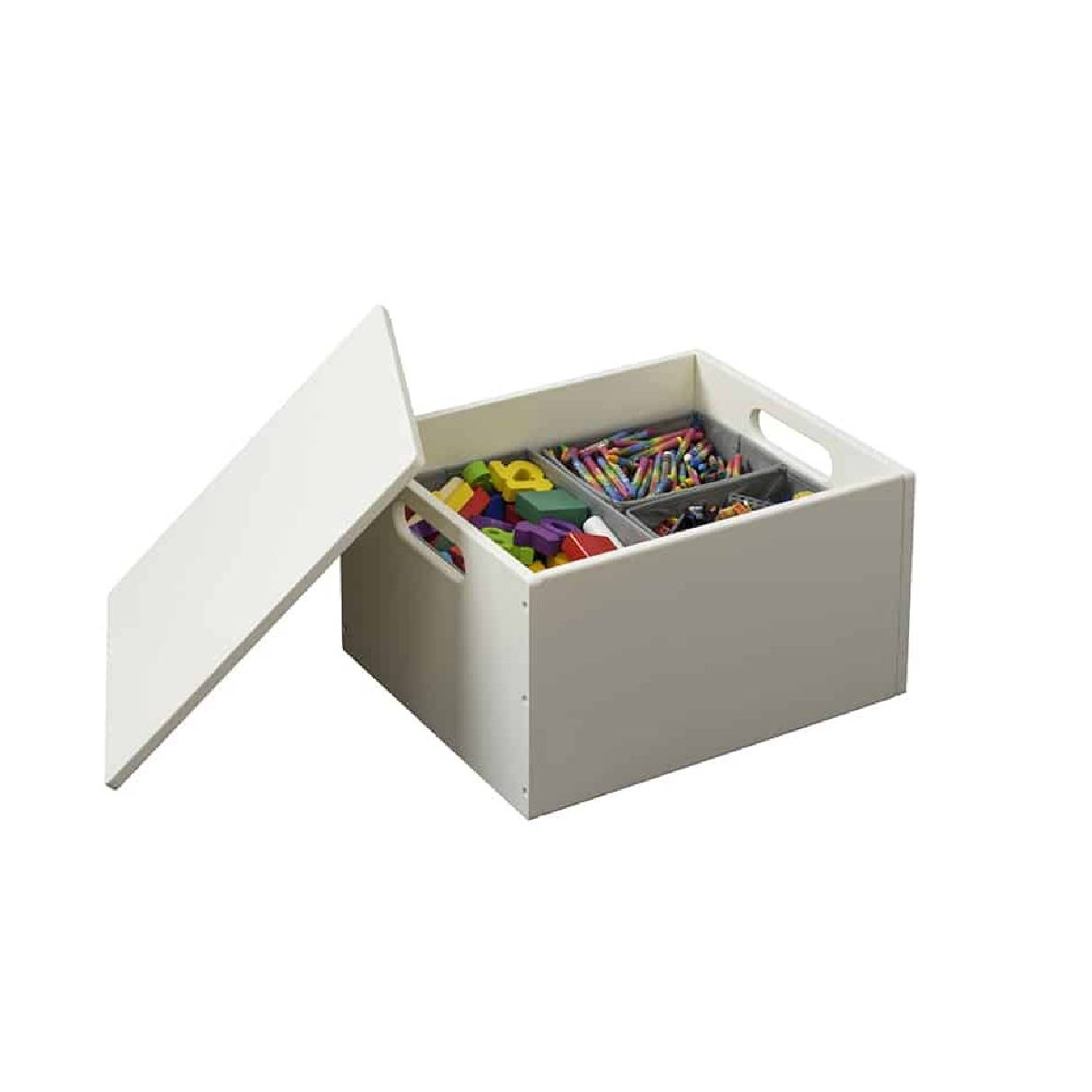 Three lift out dividers in each Sorting Box help your kids sort the Lego from the Playmobil. So your child can find the toy they want independently, and get on with play. FEATURES: Free inserts included to keep everything organised. Made with sustainable lime plywood. Designed by a mother. Personal customer support from the Tidy Books team. We?re here for you. Handmade product. Finished in an eco-friendly water lacquer for a natural vintage look.
