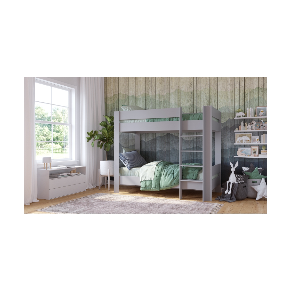 The Coast Bunk Bed and Mid-Sleeper have a design that meet the requirements of any modern bedroom. The straight lines and wide panels give it a contemporary aesthetic, as well as a strong and durable construction that meet all UK and European safety standards. The Coast Bunk Bed and Mid-Sleeper are designed to maximise space in any bedroom, the bunk bed ideal for those who share a room and the mid sleeper allowing space beneath for storage units or play. Available in white to fit any room setting or a cool grey that adds calming element and a twist to the norm. The Coast Bunk Bed and Mid-Sleeper has a security rail on the higher sleeping level for a safer sleeping experience. The solid bed slats are designed to allow air flow through the mattress, for both comfort, and to prolong the life of the mattress. The Coast Bunk Bed and Mid-Sleeper will arrive boxed and flat-packed with detailed instructions for an easy self-assembly. Features: Suitable for children over 6 years of age Clean, contemporary design, that suits all modern tastes Maximise space in any room Slatted base for extra comfort and to prolong mattress life Sturdy design with integrated ladder Easy self-assembly with clear instructions Conforms to: EN 747-1: 2012 + A1: 2015 & EN 747-1: 2012 + A1: 2015 Takes 2 x UK standard singles L. 190 x W. 90 cm Dimensions: Size: H164. 5 x W109. 5 x D197. 5 Weight: 91 Kg