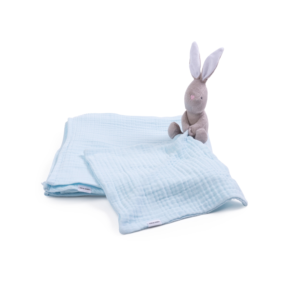Kiki & Sebby Hop Hop Bunny Comforter Muslin Cloth – Blue