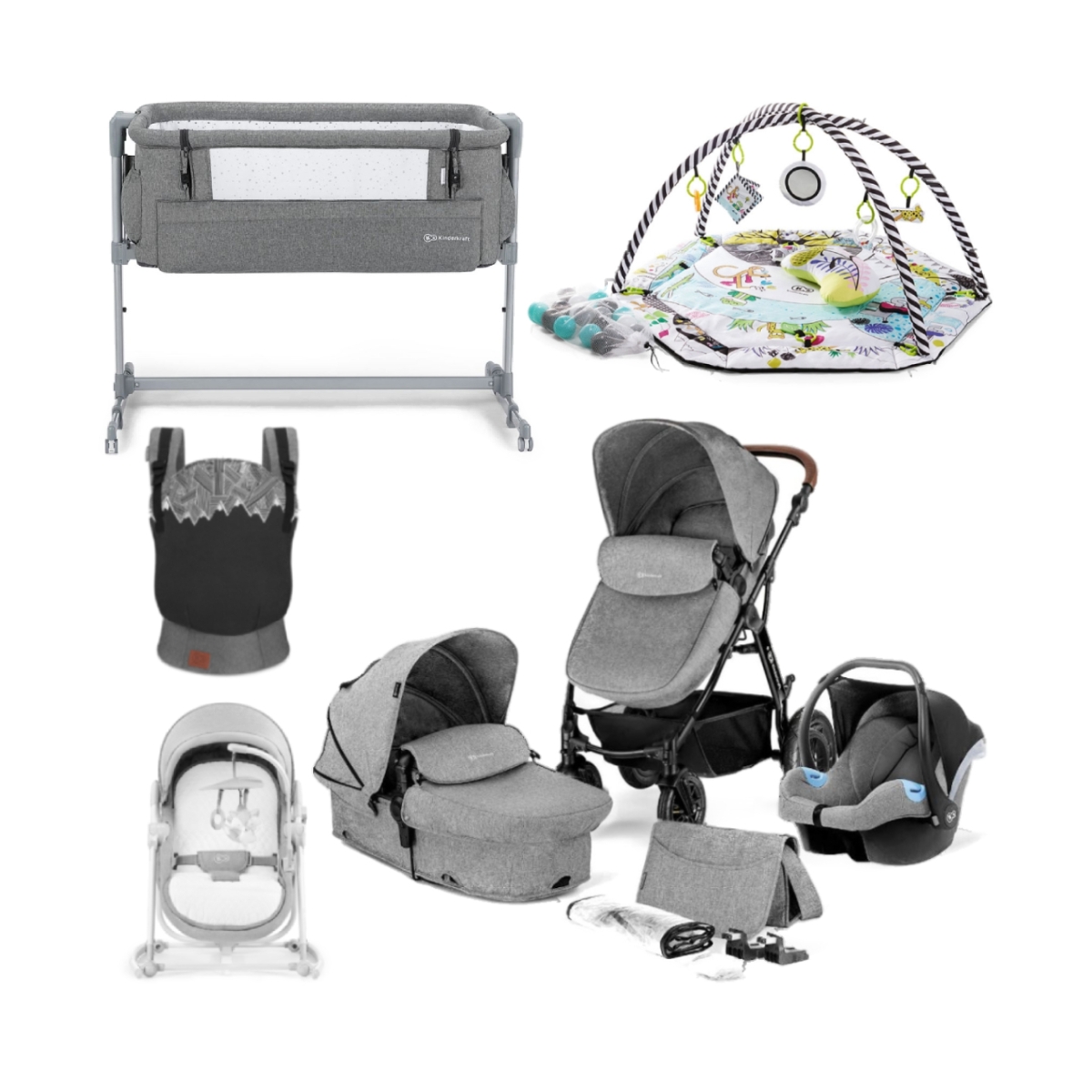 Package Includes: Kinderkraft MOOV Pushchair Kinderkraft MOOV Carrycot Kinderkraft Mink Car Seat Kinderkraft UNIMO 5in1 Cradle Kinderkraft Milo Baby Carrier Kinderkraft Smartplay Educational Playmat Kinderkraft Neste UP Crib/Travel Cot Kinderkraft MOOV Pushchair: The Kinderkraft Moov is a modern multifunctional pushchair equipped with 2-in-1 seat/carrycot unit suitable from birth up to 22kg. It features durable steel chassis with large inflatable rubber wheels with shock-absorbers to provide an excellent ride in any terrain. Simple and the effortless folding system allows you to collapse Moov frame to a compact size. The frame itself features an adjustable handle, convenient central foot brake and spacious easy accessible shopping basket. The Moov seat/carrycot features a soft padded interior and large integrated canopy with air vent panel and weatherproof peek-a-boo window with magnet closure. One your baby is able to sit you can set transform carrycot to comfortable seat unit, which can be adjusted to one of the 3 recline settings, including lie-flat position – perfect for a little nap. The seat can be set in the world or parent-facing position. Soft padded 5-point safety harness and bumper bar secure your baby in place. The Kinderkraft Moov has high-quality washable fabrics and finished with eco-leather parent’s handle and detachable bumper bar. The set comes with footmuff, rain cover, mosquito net and a practical stroller bag. This 3-in1 Travel System package comes with multifunctional Kinderkfarf Mink infant carrier suitable up to 13 kg. The car seat features a lightweight and durable shell lined by the stylish soft padded fabrics including infant insert and provided with a 3-point safety harness. The removable sun shield attaches to the adjustable carry handle, which can be set in 3 positions. The Mink has Maxi-Cosi® attachment points and can be installed on the pushchair chassis via car seat adaptors included. Features: Suitable from birth up to 22kg Durable