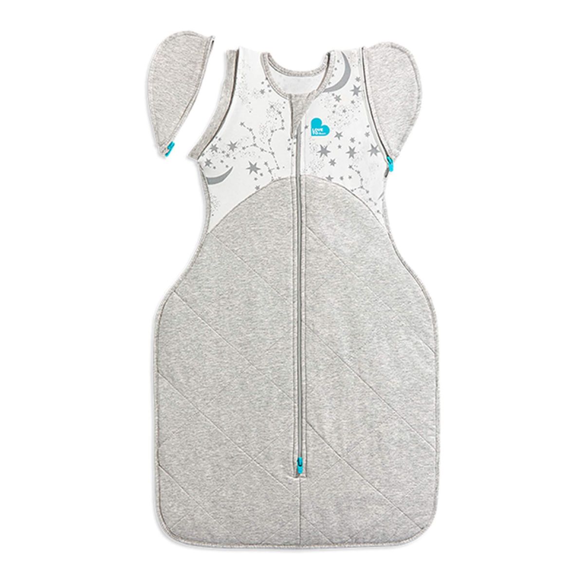 Combining the benefits of traditional swaddles and the ease and safety of a sleepsuit, the Love To Dream Swaddle UP Transitional Bag Warm is the perfect tool to reduce sleepless nights. The soft, clingy fabric wraps around baby to replicate the feeling of being in the womb, whilst the ARMS UP hip-healthy design aids their natural sleeping position. However, ARMS UP swaddling must come to an end as babies start to independently roll onto their sides. This is where the unique zip-off wings of the Love To Dream Swaddle UP Transition Bag become essential. For a no-fuss transition out of swaddling simply zip off one wing at a time, allowing your baby to slowly adjust to ?arms-free? sleep. Certified by the International Hip Dysplasia Institute, both the Swaddle Up Transition Bag and Transition Suit are the simplest sleep solutions to help transition baby safely from being swaddled to arms free sleeping ? all while maintaining their cherished sleep routine. Features: Easy to use; legs in, arms in and zip up, with the two-way zip allowing you change your baby’s nappy without disrupting their sleep The Patented Zip-Off wings make the transition out of swaddling easy and peaceful for both you and your baby Designed based on research in babies sleep and development in the womb with the ARMS UP position allowing babies to soothe themselves to get to sleep, by touching their face and sucking on their hands. The Healthy-Hip fit is also recognised by the International Hip Dysplasia Institute Made from a triple layered construction featuring 2 layers of fabric, plus 1 layer of triple stitched wadding. Featuring an Original Jersey knit outer with cotton quilted wadding in the middle and a soft stretch cotton lining as the inner which is soft on baby?s skin. The 100% natural cotton wadding provides softness, effective insulation, and warmth Fabric content: Outer & Lining: 93% Cotton 7% Elastane. Filling: 100% Viscose (from Bamboo) Warm gentle machine wash in wash bag with similar col