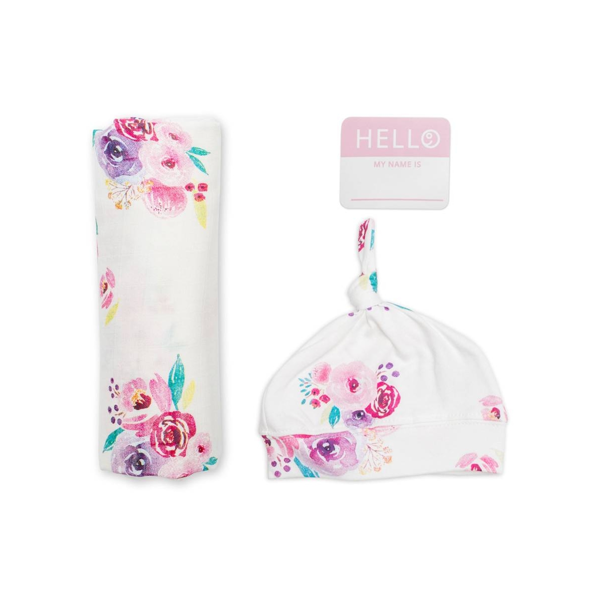 Lulujo Bamboo Hat and Swaddle Blankets-Posies