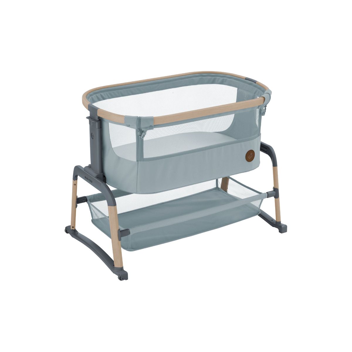 The Maxi-Cosi Iora Air is an extra-comfortable, soothing co-sleeper, designed to keep your baby close and deepen that special bond. A sumptuously thick mattress will provide all the comfort your little one needs. And for the more challenging nap times, a handy rocking-function will help soothe your baby back to sleep. Made with super-soft, premium, 100% recycled fabrics, the Iora Air features an all-round, breathable mesh fabric. And a large storage basket underneath ensures all your baby essentials are within reach, for around-the-clock care. Features: From birth up to Approx 6 months Easy to fold Easy to carry with a transport bag Easy to move thanks to the invisible wheels Easy slide function Machine washable cover Large storage basket Enhanced breathability & ventilation Extra comfortable mattress Soothing rocking function Straps to secure to the parent’s bed are included Eco Care: made from recycled fabrics 5 height adjustements