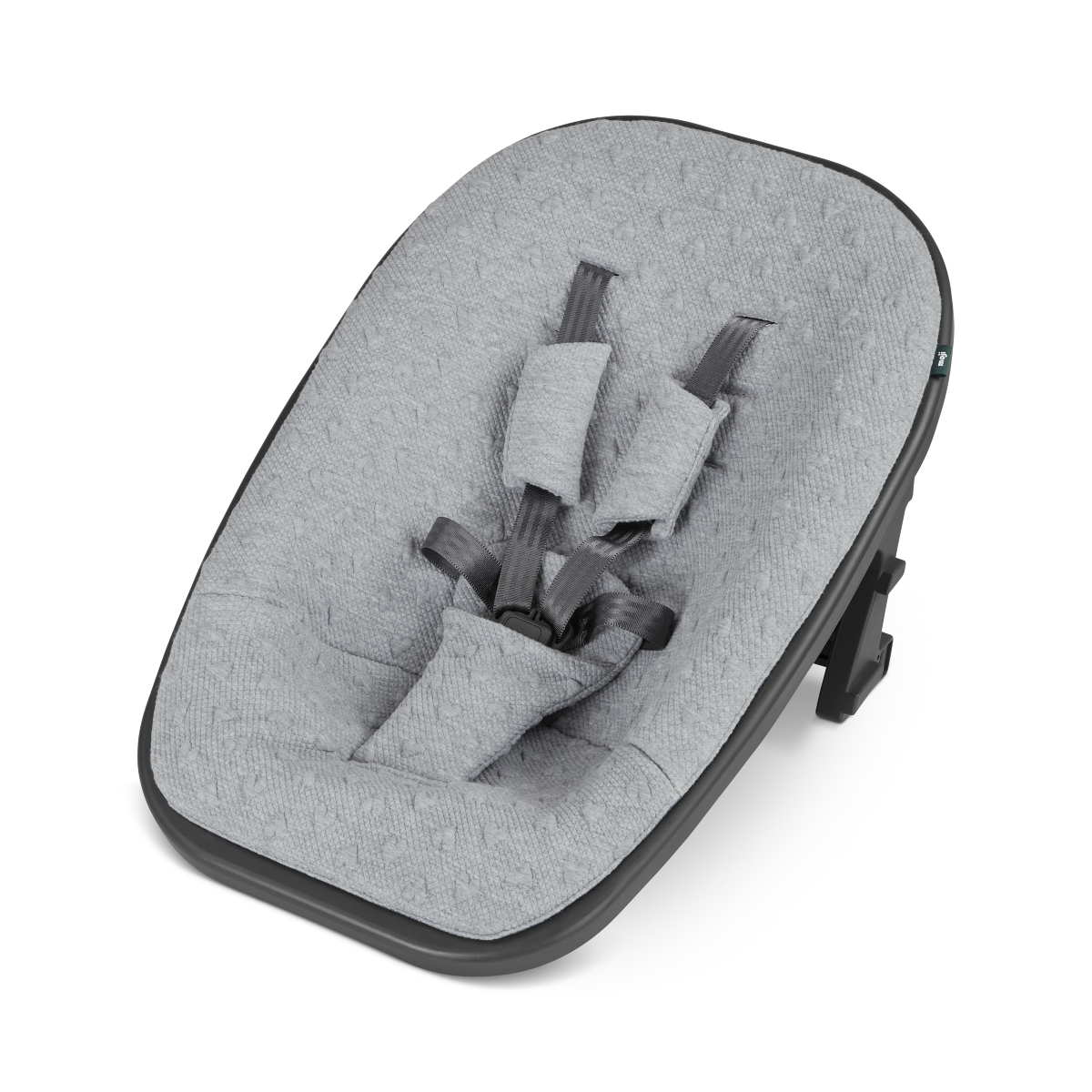 Thanks to the practical YIPPY high chair newborn set, your baby can enjoy family life with you, eating at the dining table from day one. The newborn set can be used from birth and provides comfort for both you and your little one. Attach the pod to the YIPPY wooden high chair in a few simple steps, no tools required. Now you’re ready to go! Whether it’s a matter of enjoying a well-deserved nap or time together at the dinner table: you can place the pod in two different positions with a flick of the wrist. Lying flat, your baby can snuggle down in the super soft pod. When slightly upright, your little treasure can discover their surroundings, practise their first smiles and enjoy happy moments with the whole family. Every day something new happens in the life of a baby. For example, at around 4 months, your baby will have their first attempts at using a baby spoon. This is super exciting, but it doesn’t always go to plan right away. Bits of porridge drop and land safely on the fabric of the newborn set. No big deal at all, you can just take the fabric off and clean it quickly using the cold wash programme on your washing machine. The safety of your baby also plays a key role. The 5-point harness system with its extra-soft harness pads for the shoulder and crotch area ensures maximum safety. For the correct fit, you can quickly adjust the harness to the size of your child. Features: Suitable for babies from birth to approx. 6 months Quick and easy installation, no tools required Padded newborn set with a 5-point harness system and protective harness pads for the shoulder and crotch area Adjustable in two positions Extra-large lying surface for maximum comfort Dimensions: Dimensions Lying Area: 67 x 43 cm Total weight: 2. 3 kg