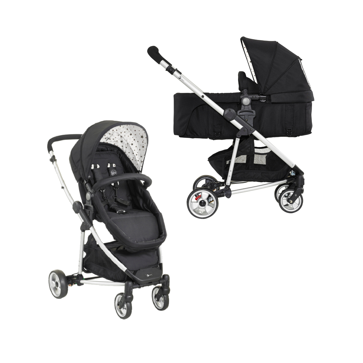 Pram or pushchair, you decide! The Mychild Floe Pushchair can be used from birth as a parent facing soft bodied pram, providing newborns with a flat, cosy sleeping environment without the added expense of a separate carrycot. And when your little one grows and can sit unaided, you can easily convert the pram body into a seat unit for use up to 15kg. The seat unit can be used either parent or world facing and features a multi position recline for maximum comfort. Its large 3 panel hood is fully lined and contains a peek-a-boo window for endless interaction with your precious cargo. The seat unit also comes with a removable 5 point safety harness (including shoulder pads) which can be set to three height positions to fit growing toddlers. Rear wheel suspension and lockable front swivel wheels ensure a smooth ride, and when you?re done strolling, the lightweight aluminium frame can be folded, locked shut and carried using the rubber grip carry handle, helping to make every journey as seamless as possible. Complete with a large shopping basket containing a handy zipped compartment for safe storage. You can also convert your pushchair into a travel system by using a compatible infant carrier (available seperately). Features: Suitable from birth (pram mode) Convertible seat from pram to seat unit Parent or forward facing seat unit with recline Removable 5 point harness including shoulder pads Removable belly bar Large three panel hood with peek-a-boo window Lockable front swivel wheels Rear wheel suspension Basket with zip storage pocket Carry handle and travel lock Lightweight aluminium chassis Car seat compatible Dimensions: Dimensions: (L): 99cm x (W): 59cm x (H): 91cm Weight: 9. 6kg