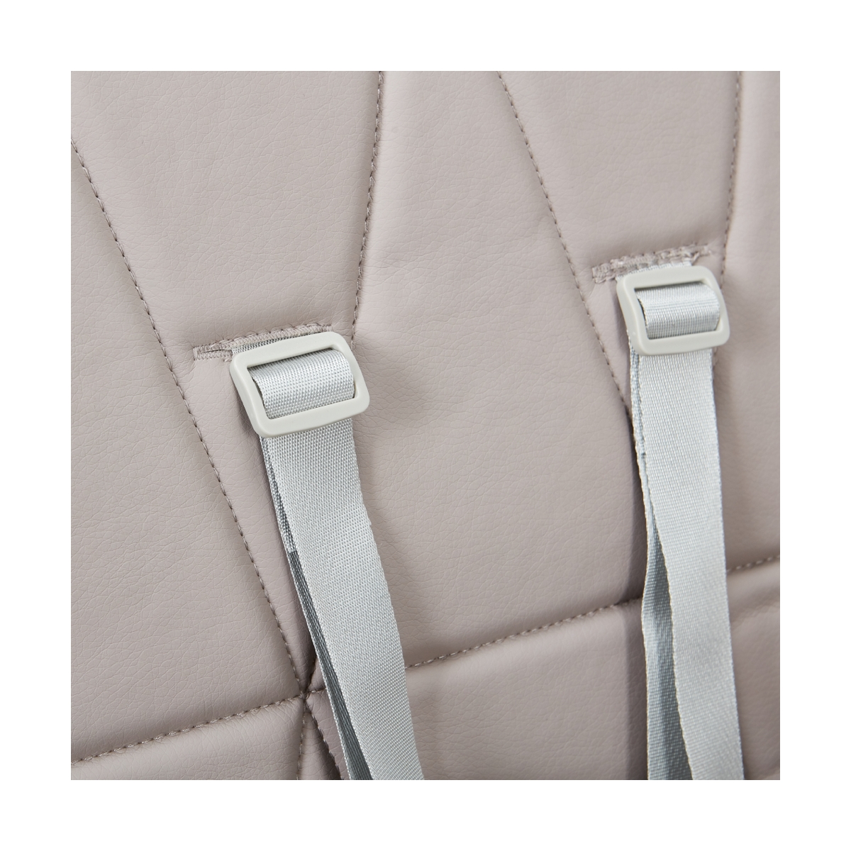 If you?re short on space, this is the highchair for you! The Hideaway highchair makes a simple style statement with a spacious quilted leatherette seat, satin harness straps, a large detachable tray, and adjustable calf rest. When your child has finished snacking, the highchair folds in seconds. With a compact, flat folded size of only 70 x 60 x 8cm, it?s easy to ?hideaway? when not in use, plus a practical carry handle makes it both portable and easy to store. Suitable for everyday and occasional use, it?s an excellent choice for galley kitchens, compact homes or visiting friends and family. You could even store it in a cupboard or hang it on the back of a door! Clearing up after messy mealtimes is straightforward thanksto the waterproof wipe clean seat and the detachable, dishwasher-safe BPAfree tray. Features: Suitable from 6month to approx 3 years (15kg max) Super compact fold in seconds (70 x 60 x 8cm) 5-point satin harness Adjustable footrest BPA-free, dishwasher-safe tray Wipe clean leatherette seat Seat detaches for additional cleaning Lightweight (4. 3kg) and portable