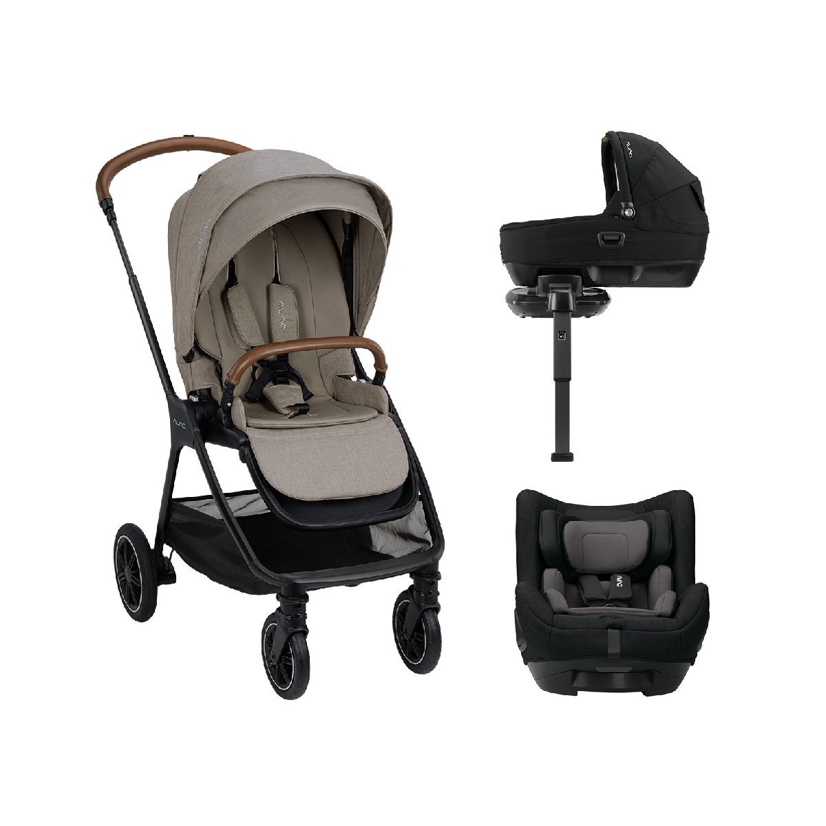 Package Includes: Nuna TRIV Next Hazelwood Stroller Nuna CARI Next Caviar Carrycot Nuna TODL Next iSize Group 0+ Caviar Car Seat Nuna Base Next Rotating Isofix Caviar Base Nuna TRIV Next Hazelwood Stroller: A morning stroll to the park or afternoons in your favourite coffee spot, every day out and abouts with the baby are fuss-free with the TRIV? next pushchair. It?s a natural city dweller that quickly converts to a travel system, packs up easily and stands on its own when folded, becoming the perfect sidekick to your everyday adventures. Engineered for convenience and comfort, the all-wheel suspension, one-touch braking system, and large rear wheels promise easy manoeuvrability and cushiony smooth city strolls – like riding on air with complete peace of mind. This compact fold pushchair is cleverly designed with a seat that faces and folds both ways, no matter what direction the baby’s facing. The all-season seat keeps your precious cargo snug in winter and converts to breathable mesh in summer, while the rain cover provides extra protection no matter the weather. Features: Recommended use: Birth to 22kg Seat faces both ways and easy to fold flat, whatever direction baby?s been facing Spring suspension seat technology for smooth rides Magne Tech secure snap? – the self-guiding magnetic buckle that automatically locks into place Dimensions: Product: L85cm x W57. 5cm x H105. 5cm Product Folded: L31. 5 x W57. 5 x H69 cm Product weight: 9. 15kg (8. 72 w/o insert & armbar) Nuna Cari Next Caviar Carrycot: Every parent needs a trusty travel companion to enjoy those everyday adventures that are waiting around the corner. CARI next is Nuna’s carrycot car seat. The super comfortable CARI next allows the baby to lay peacefully at a full recline – the best position for a developing spine. This NEXT system compatible carrycot features an organic jersey mattress and infant inserts that add comfort and a 3-point harness that adds security. You can travel from home, to car, to pushchair,