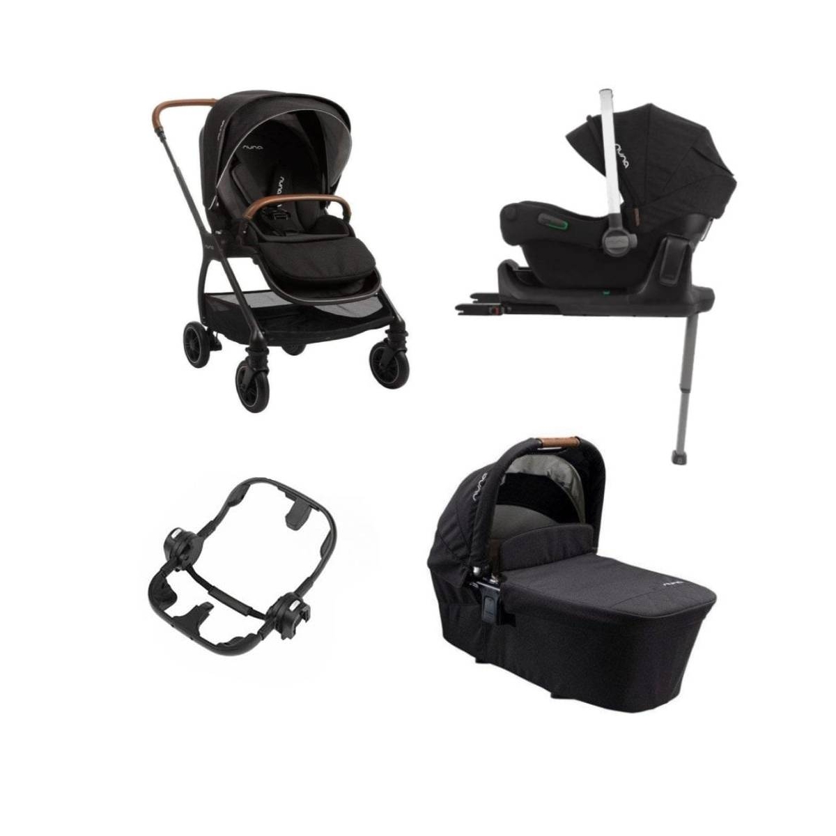 This Package Includes: Nuna Triv Stroller Nuna Triv Carrycot Nuna Pipa Next I-Size Car Seat Nuna Pipa Isofix Base Nuna Triv Pushchair The Nuna TRIV stroller is the everyday travel companion. Perfect for city-living or jet setting travellers, the TRIV includes a quick, compact one-hand fold, spring suspension technology, all-wheel suspension and adjustable support for your little one. The TRIV has been cleverly designed with a seat that can face both ways and fold both ways, and can easily convert to a travel system (with optional accessories ? sold separately). Features: Red Dot Product Design Winner 2020 Lightweight compact one-hand fold Spring suspension technology All-season seat 4 position recline No re-thread harness Water repellent UPF 50+ canopy Luxe leatherette accented pushbar and armbar Included ring adaptor folds with pushchair Dimensions: L81 x W52 x H109cm Weight: 8. 8kg Nuna Triv Carrycot Take your little one to the land of nod with the Nuna Triv carrycot. Designed to be exclusively used with the Triv pushchair. Clicks simply on to the Triv chassis it is the perfect addition to keep your infant comfortable and relaxed on trips out. Features: Suitable from birth To be used with the Nuna Triv Pushchair Mattress cover and top cover are machine washable Integrated mesh window Incorporated storage pocket Luxe hand-sewn leather-look carry handle NUNA PIPA NEXT CAR SEAT Suitable from 40- 83cm the Nuna PIPA NEXT is a lightweight and super safe infant carrier, equipped with convienient leatherette handle and many useful features. This premium car seat provides superior side impact protection and is compliant to the latest i-Size regulations. Patented Tailor tech? memory foam infant inserts with 7-position headrest and no re-thread adjustable three-point harness ensure your baby is ideally fitted and secured. The expandable UPF 50+ water repellent canopy with flip out eyeshade and Dream drape? provides a super shady environment for uninterrupted naps. The Dream d