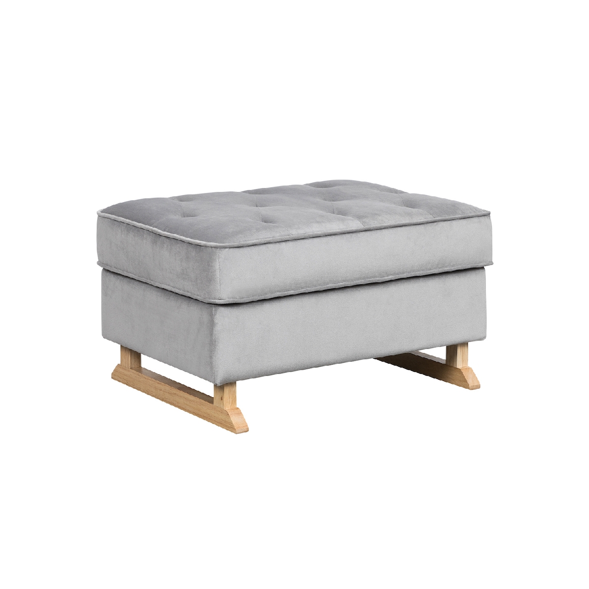 The Nursery Collective Footstool Quiet Grey Natural is the perfect accompaniment to the stunning rocking chair. Fully upholstered in a luxury velvet style fabric, the new Nursery Collective Footstool coordinates perfectly with the existing collection of nursing chairs already available. A footstool provides a comfortable place to put your feet whilst relaxing in the chair. Comfortable to use when the chair is in either rocking or static mode. The footstool features clever and useful storage with a quiet gas lift hinge to easily open and close. Designed not only for enjoying with your baby during those first years but also to become a piece of furniture you keep and cherish forever in your home. FEAURES: Made using a luxury plush velvet style fabric Available in a range of stunning colours to suit any nursery and home interior A comfortable place rest your feet whilst nursing and comforting your little one Beautiful pin tuck detailing Quiet and smooth gas lift dual hinge opening Generous internal storage Choose from white or natural legs Available in a selection of stylish colours to suit any nursery and home interior. DIMENSIONS: Stool 72 x 49 x 40cm (L x W x H) Internal storage 60 x 39 x 14cm (L x w x H) Fabric 100% polyester with lacquered natural coloured rubberwood static legs, timber frame.