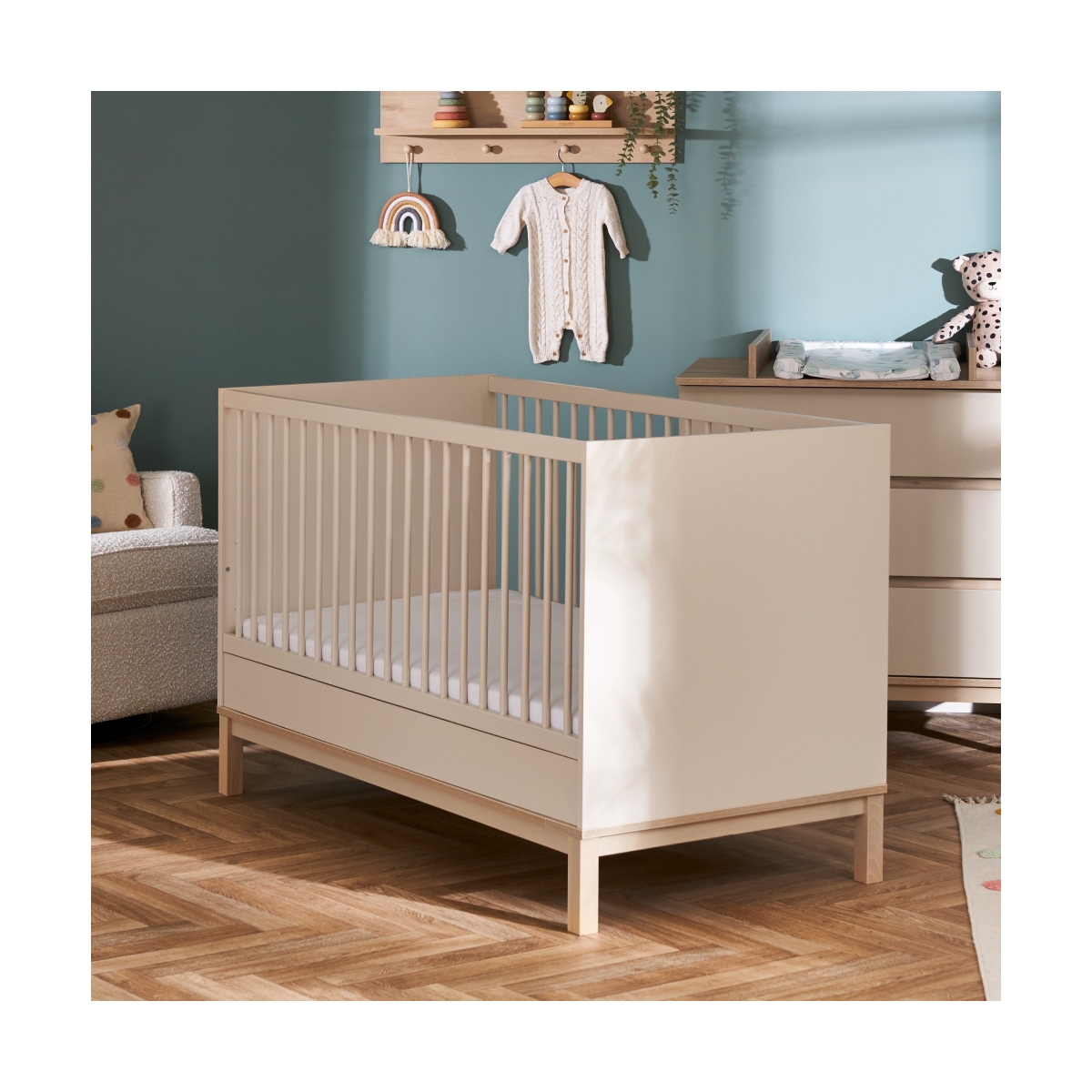 The name Astrid is of Scandinavian origin and means ?divinely beautiful?. With both practicality and style, The Astrid is the perfect addition to any dream nursery. The Astrid cot bed will grow with your little one. Suitable from birth until approx. 4 years old, the 3-position base height ensures there is a setting for each of your child?s milestones. When it is time to transition to a big bed the included dual ended safety rail will provide reassurance and familiarity during an often-daunting time. The Astrid cot bed requires an Obaby 140 x 70cm mattress, available separately. Features: Adjustable, three-position base height Side is removable for effortless transformation into a toddler bed Includes a safety rail for toddler bed transition Suitable from birth to approximately four years old Sleek modern craftmanship Requires mattress measuring 140 x 70cm (Available separately) Dimensions: Dimensions: 144 x 75 x 93cm Weight: 39. 5kg