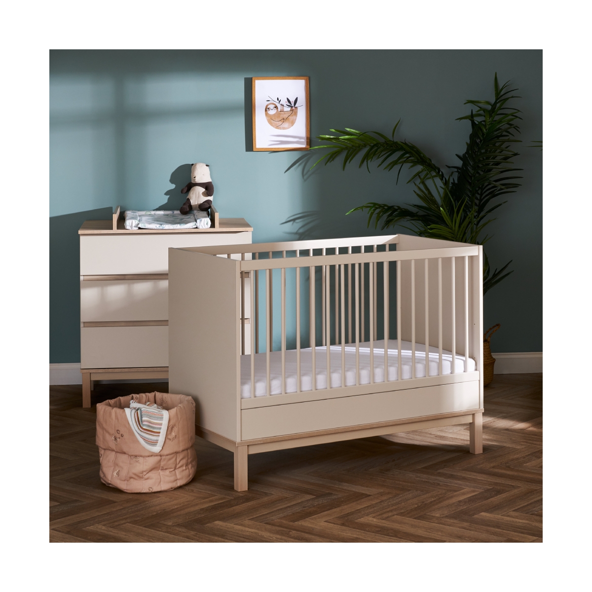Package Includes: Obaby Astrid Mini Cotbed Obaby Astrid Changing Unit Obaby Astrid Mini Cotbed The Obaby Astrid Collection, experience the ultimate in contemporary style and luxury design. The sleek modern craftmanship features no ? handle drawers with a gentle push to open and close. The Astrid provides both practicality and style, making it the perfect addition to your dream nursery. The Astrid Mini means those with a more compact nursery don?t have to compromise on quality and style. Mini by name, but certainly not by nature! Suitable from birth until approx. 4 years old, the 3-position base height ensures there is a setting for each of your child?s milestones. When it is time to transition to a big bed the included safety rail will provide reassurance and familiarity during an often-daunting time. The Astrid mini cot bed requires an Obaby 120 x 60cm mattress, available separately. Features: Suitable from birth to approximately four years old Adjustable, three-position base height Side is removable for effortless transformation into a toddler bed Includes a safety rail for toddler bed transition Sleek modern craftmanship Requires mattress measuring 120 x 60cm (Available separately) Dimensions: Dimensions: 124 x 66 x 93cm Weight: 32. 9kg Obaby Astrid Changing Unit The Obaby Astrid Collection, experience the ultimate in contemporary style and luxury design. The sleek modern craftmanship features no ? handle drawers with a gentle push to open and close. The Astrid provides both practicality and style, making it the perfect addition to your dream nursery. With its clean lines, the Astrid is not just a changing unit. The three large drawers fronted by a chic no-handle design provide plenty of storage. While the clever positioning of the changing top means you are stood face on to baby, allowing plenty of precious one to one time. Once you no longer need to use the changer, the removeable top ensures you have a stylish chest of drawers that will complement any room of t