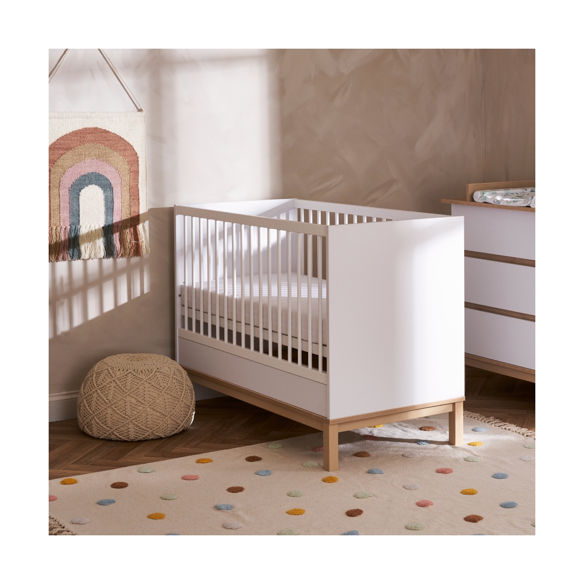 The Obaby Astrid Collection, experience the ultimate in contemporary style and luxury design. The sleek modern craftmanship features no ? handle drawers with a gentle push to open and close. The Astrid provides both practicality and style, making it the perfect addition to your dream nursery. The Astrid Mini means those with a more compact nursery don?t have to compromise on quality and style. Mini by name, but certainly not by nature! Suitable from birth until approx. 4 years old, the 3-position base height ensures there is a setting for each of your child?s milestones. When it is time to transition to a big bed the included safety rail will provide reassurance and familiarity during an often-daunting time. The Astrid mini cot bed requires an Obaby 120 x 60cm mattress, available separately. Features: Suitable from birth to approximately four years old Adjustable, three-position base height Side is removable for effortless transformation into a toddler bed Includes a safety rail for toddler bed transition Sleek modern craftmanship Requires mattress measuring 120 x 60cm (Available separately) Dimensions: Dimensions: 124 x 66 x 93cm Weight: 32. 9kg