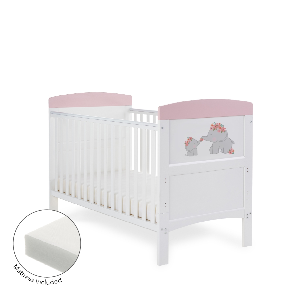 Obaby Grace Inspire Cot Bed & Fibre Mattress Me & Mini Me Elepha