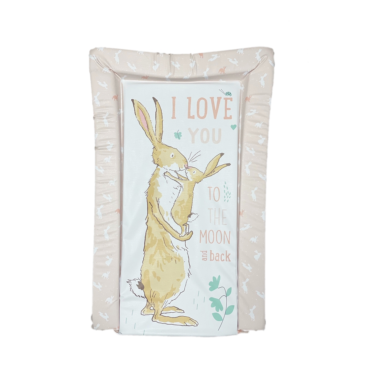 Our ‘Guess How Much I love you’ changing mat, is the perfect finishing touch to any nursery, with beautiful designs from the much loved nursery book, illustrated by Anita Jeram Our changing mat, measuring approximately 76 x 46cm, features a foam filled interior and raised edges that ensure changing time will be comfy and secure for your little one whilst the PVC cover makes cleaning the changing mat a breeze. Features: Perfect finishing touch to any nursery Beautiful designs from the much loved nursery book Perfectly sized for Obaby changing units Foam filled interior and raised edges that ensure changing time will be comfy and secure PVC cover makes cleaning the changing mat a breeze Dimensions: Measuring approximately 76 x 46cm