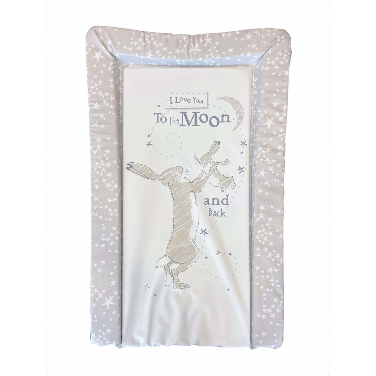 Our ‘Guess How Much I love you’ changing mat, is the perfect finishing touch to any nursery, with beautiful designs from the much loved nursery book, illustrated by Anita Jeram Our changing mat, measuring approximately 76 x 46cm, features a foam filled interior and raised edges that ensure changing time will be comfy and secure for your little one whilst the PVC cover makes cleaning the changing mat a breeze. Features: Perfect finishing touch to any nursery Beautiful designs from the much loved nursery book Perfectly sized for Obaby changing units Foam filled interior and raised edges that ensure changing time will be comfy and secure PVC cover makes cleaning the changing mat a breeze Dimensions: Measuring approximately 76 x 46cm