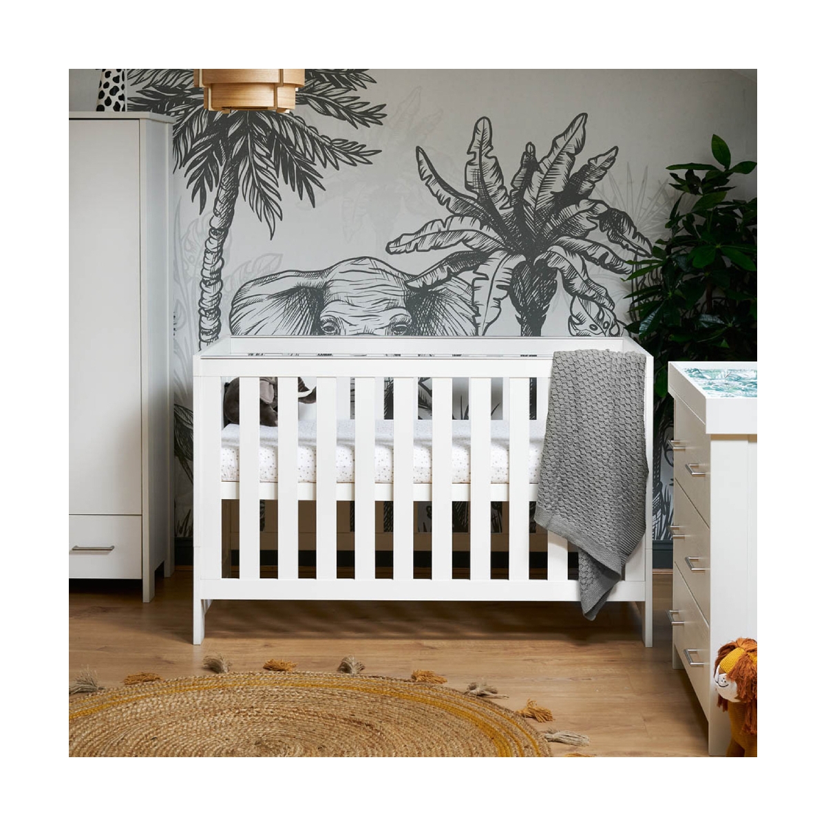 With a modern design and a beautiful textured oak effect finish, the Nika Cot Bed from Obaby will complement your nursery perfectly and it even features teething rails to protect your little one?s teeth. From birth, the Nika creates a safe and comfortable environment for your little one to sleep and the 3 different mattress heights mean you can have your little one up high, making it easy to lift them in and out. As they grow, the base can be lowered to position 2 or 3 and this stops your toddler being able to climb out too! At around 18 months old, the cot can be converted to a toddler bed for use until they are 4 years old. Features: Suitable from birth to approximately 4 years old Textured oak wood effect finish Adjustable base height – 3 positions Converts from cot to toddler bed Teething rails to protect teeth Requires mattress measuring 140 x 70cm, available separately Free Obaby 5 year guarantee to UK & Ireland Dimensions: Weight: 36g Dimensions: 92 x 77 x 145cm (Hx Wx D)