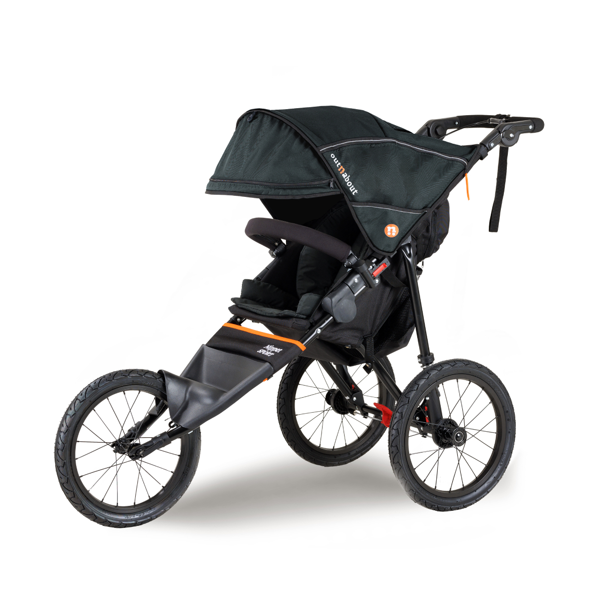 The Refreshed and Upgraded Multi-award winning Jogging and All terrain buggy from Out?n?About. Features: Suitable from Newborn to Toddler Parent facing car seat compatible Light, Easy to fold & Easy to clean 16? Air filled tyres and suspension for bumpy terrain Fixed front wheel and handlebar brake Easy to remove wheels and compact fold for storage Comes complete with a bumper bar, seat liner and rain cover 2 years Manufacturer’s warranty Care Instruction: Should not be used to jog with babies under 6 months of age. Dimensions: Size: 61. 5cm (W) x 103 cm (H) x 137cm (L) Size Folded (wheels on): 61. 5cm (W) x 61cm (H) x 104cm (L) Size Folded (wheels off): 48cm (W) x 29cm(H) x 90cm (L) Handle height: 83cm – 111cm Weight: 9. 8kg Maximum Load: 22kg Age Suitability: Newborn to 4 years (approx.) & 6 months+ for jogging