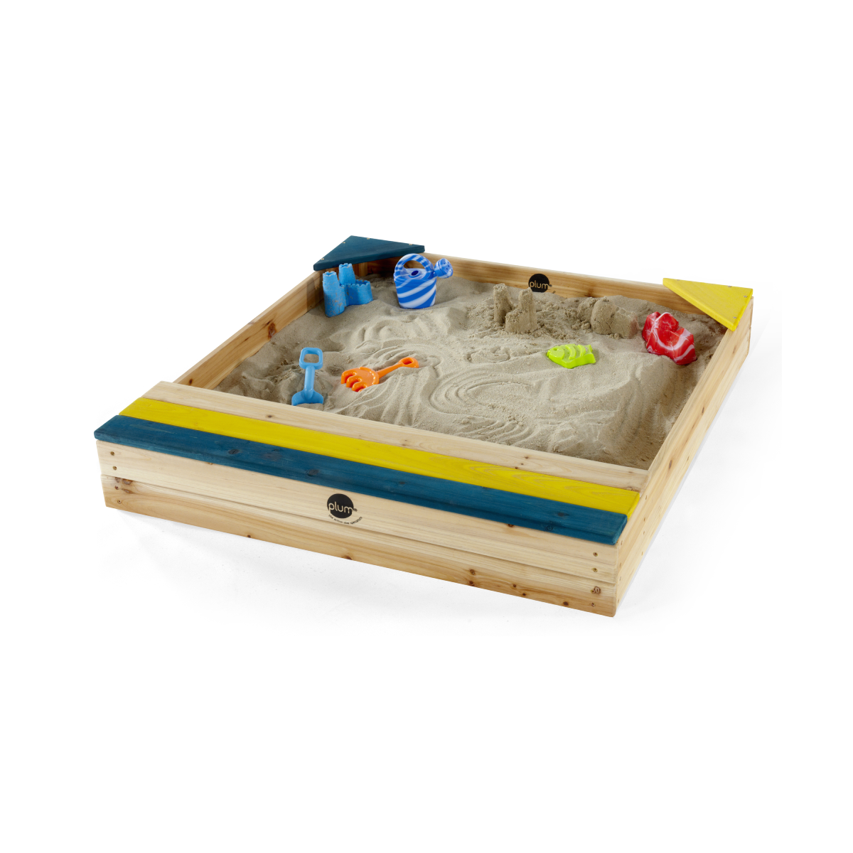 Are your children always losing their toys all over the garden? The Plum® Store-It Wooden Sand Pit has a handy colourful storage box so they?ll never get misplaced again! Encouraging outdoor play and exercise, this sand pit is perfect for digging, building and creating shapes in the sand with friends. Made from FSC® certified sustainably sourced timber and pressure treated for longevity and durability. The sand pit has rounded edges for added safety. Easy to assemble and is supplied with a protective cover and ground-sheet. The internal textile ground cover prevents weeds from growing through and allows water to drain out of your sandbox. For added versatility, just add play balls and you have an instant ball pit to keep your young kids amused for hours. Twice the entertainment in one product and only uses a small footprint in the garden! Features: Fun sand pit with colourful box to store sand toys Made from FSC® certified sustainably sourced timber with rounded corners for added safety Sand pit includes protective cover and ground sheet Sand/play balls not included Internal ground cover prevents weeds from growing through and allows water drainage Just add play balls to convert into a ball pit 1 Year Warranty Dimensions: Size: 100 x 96 x 16cm Weight: 7kg