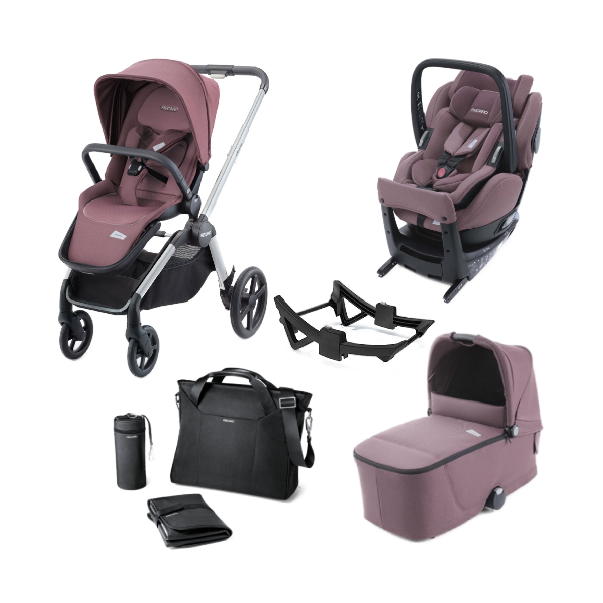 This Package Includes: Recaro Celona Chassis Recaro Celona Seat Unit Recaro Celona Carrycot Recaro Salia Elite i-Size Group 0+/1 Car Seat Recaro Changing Bag Recaro Car Seat Adapters Recaro Raincover Recaro Celona Pushchair: The family will enjoy adventures together with the Recaro Celona 8 Piece Bundle. The Celona stroller is the perfect everyday companion. Even on rough terrain, the Celona is practical and easy to manoeuvre. The large rear wheels and outstanding suspension ensure that every trip is as comfortable as possible. Your child will rest easy in the ergonomic seat, the integrated headrest establishes the sensitive head and provides additional comfort. Recaro Celona Chassis Features: Height-adjustable handle: Can be ergonomically adjusted to any body size Puncture-proof wheels: The maintenance-free, foam-filled wheels are easy to look after and can take on any terrain, be it asphalt, gravel or park paths Flip-flop brakes: Brakes can be operated with all types of shoes or barefoot Swivelling front wheels: Simple manoeuvring thanks to lockable 360-degree swivelling wheel Detachable wheels: For an even more compact folded form Extra-large shopping basket: Easily accessible extra-large shopping basket with up to 5kg capacity Reflectors: Improved visibility for more safety in the metropolitan jungle in low light conditions Recaro Celona Seat Unit Features: 5-point harness: With additional shoulder and crotch pads ? soft material for extra comfort Smart harness system Strapping in your child is made easier thanks to the harness buckle and shoulder straps, which jump forward and stay open when the child is removed Patented HERO safety system: A single unit compromising shoulder pads, shoulder straps and headrest prevents the harness from twisting and slipping Bumper bar: Can be turned to one side and opened on both sides to aid placing the child in the buggy Air ventilation system: Smart openings in the outer shell and mesh inserts in the seat cover allow for con