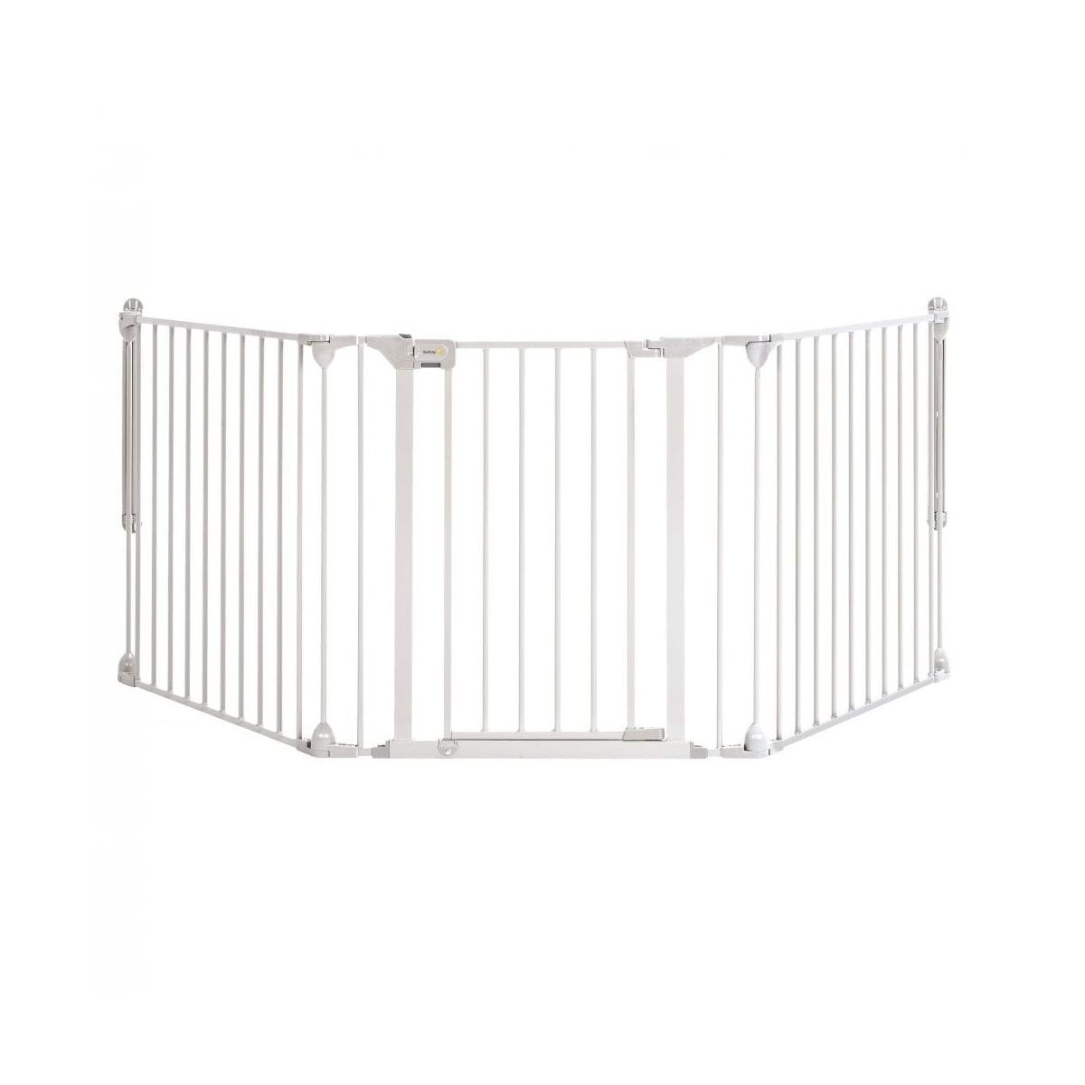 The Safety 1st Modular 3 Gate is a versatile and adaptable panel system that creates a safe environment for both babies and toddlers. Suitable to secure and prevent access to wide openings or open spaces such as open kitchens, fireplaces and wide window panels. The gate section is easy to use and the panels can be folded when not in use. Features Suitable for children from 6 to 24 months Flexible sections can be configured to fit the size of the opening Gate can also be used to keep toddlers away from hazardous areas Gate screws directly onto the wall Consists of 3 x 72cm panels Fits openings from 82 to 226cm Extends up to 370cm with extensions (available separately) Quick folding when not in use One or two way opening Wide walkthrough section Dimensions: Size: 82-226cm(L) x 4. 5cm(W) x 71cm(H)