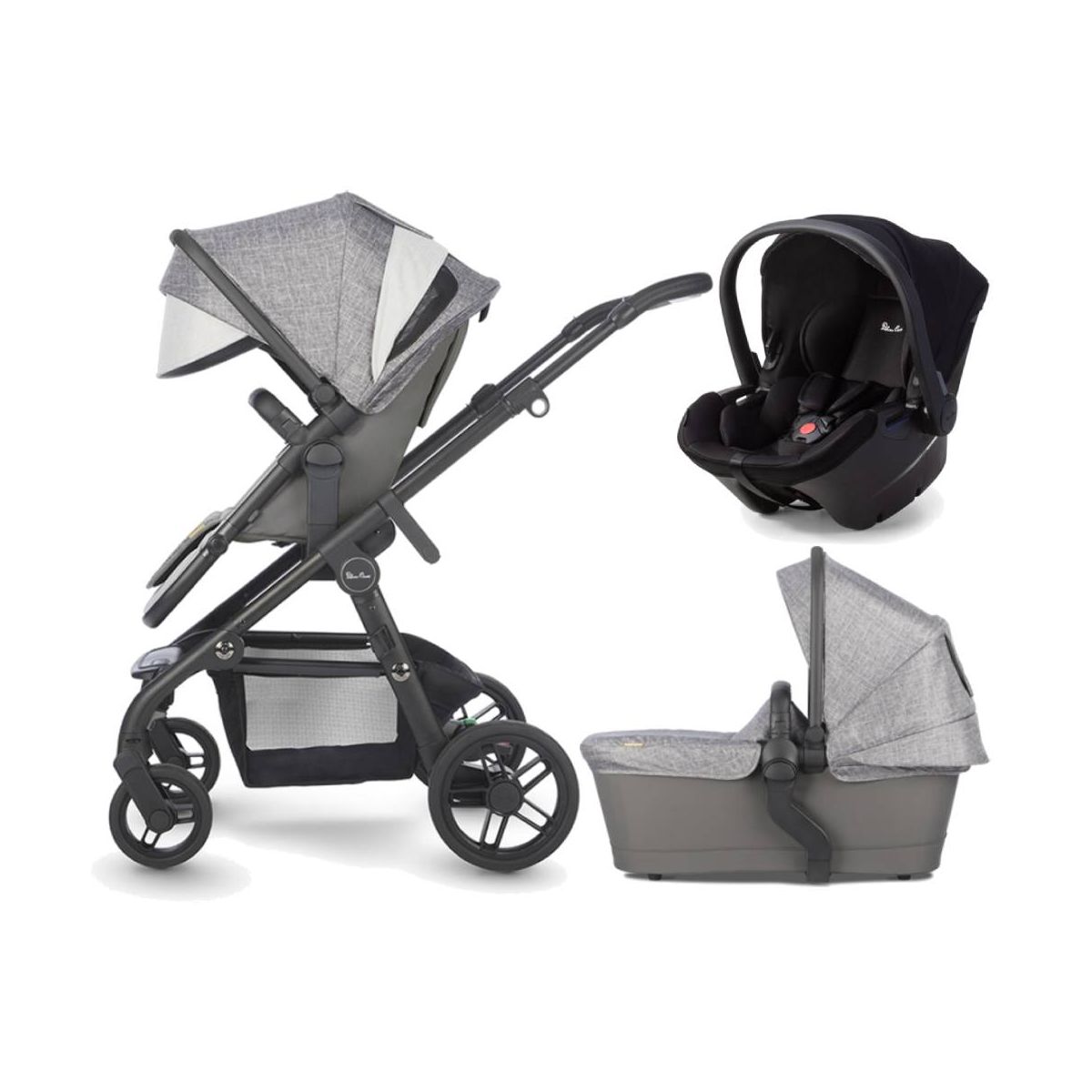 This Package Includes: Silver Cross Coast Pushchair Silver Cross Carrycot Silver Cross Simplicity Plus Car Seat Silver Cross Coast Adapters Silver Cross Coast Pram System: Effortlessly stylish with pared back detailing, Coast is our lightest and most streamlined single to double pram. Tailored for a contemporary finish, it has a sleek black satin chassis with high quality fabrics in a palette inspired by the earth?s elements. Coast is purchased as a single pram with a carrycot and reversible seat unit. By adding the optional tandem seat or a car seat, Coast becomes a One plus One® double pram to carry siblings. Add the ride-on toddler board and it can carry three children? with a total of 27 intelligent configurations. In addition, the carrycot ? which is suitable for overnight sleeping ? can be used with our folding carrycot stand, making it perfect for nights away. Features: Finished in our beautiful signature fabrics with a new hand-rendered texture An integrated ventilation system that can be uncovered for maximum airflow UPF50+, fully lined hood with pop-out sun visor Handy viewing window with silent magnetic fastening Articulating and detachable bumper bar is included for the carrycot and pushchair seat A deep padded reversible seatliner and soft touch harness pads in beautifully co-ordinated marl fabric are included The soft padded carrycot is lined with bamboo fabric The stitched leatherette handle can be adjusted to 4 height positions The stylish integrated footrest offers extra support for little feet The pushchair features a fully adjustable calf support with four locking positions One-handed multi-reclinine positions. Full upright, snooze recline and full lie flat The easy step-on step-off brake system is flip-flop friendly Coast also includes a generous, extra-large shopping basket Dimensions: L102cm x W60cm x H99cm Weight With Seat Unit: 14. 4kg Weight With Carry Cot: 15. 1kg Silver Cross Simplicity Plus Car Seat: Offering safety and comfort from day one,