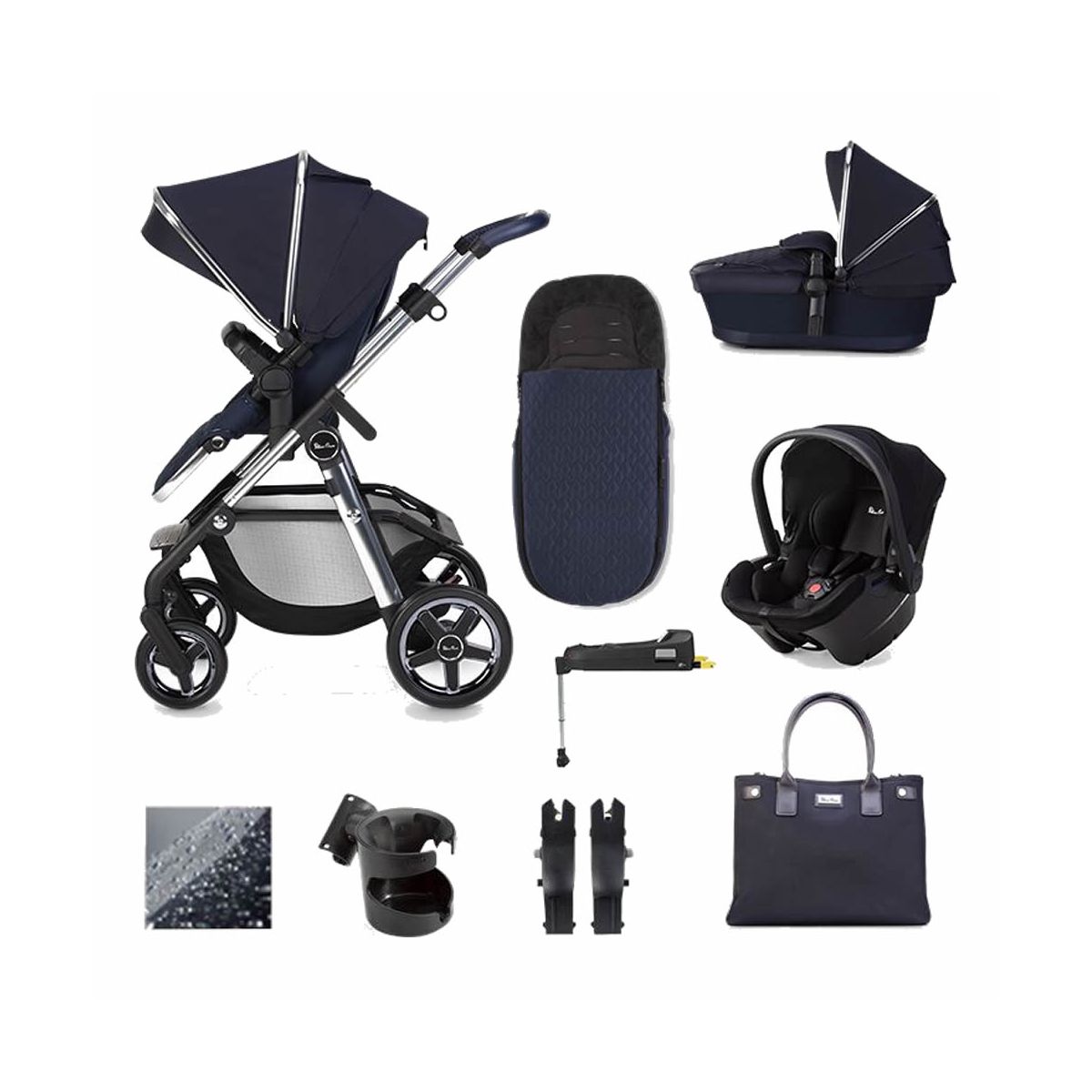 This Package Includes: Silver Cross Pioneer Pram System Silver Cross Simplicity Plus Car Seat Silver Cross Simplifix Base Silver Cross Wayfarer/Pioneer Changing Bag Silver Cross Wayfarer/Pioneer Footmuff Silver Cross Car Seat Raincover Silver Cross Car Seat Adaptor Silver Cross Pioneer Pram System: Get out and explore with the Silver Cross Pioneer 2020. The latest Pioneer travel system is now lighter for better handling, while the new-look design features a polished chrome chassis, beautiful soft quilted fabrics, a coordinating leatherette handle and stylish Silver Cross details. Perfect for every family adventure, Pioneer 2020 will tackle any terrain with ease. The large wheels, never-wear tyres and robust suspension guarantee a smooth ride for on-the-go comfort every time. The Silver Cross Pioneer 2020 won?t hold you back, wherever your journey takes you. With a restyled look and new, lighter design, Pioneer 2020 offers exceptional handling on every outing. Whether you?re venturing off-road or strolling in the city, the multi-terrain tyres and four-way suspension provide the smoothest, most comfortable ride.?The carrycot is lined in naturally anti-bacterial bamboo, which also helps to regulate temperature, while the reversible, multi-recline seat is suitable up to 25kg. The Silver Cross Pioneer 2020 is compatible with the Silver Cross Dream and Simplicity Plus infant carriers. Features: Natural bamboo lined carrycot Multi-recline reversible seat Extra-large shopping basket Multi-terrain wheels UPF 50+ sun protection hood Dimensions: L82cm x W54 cm x H93-107 cm Chassis Weight: 7kg Carrycot Weight: 2. 7kg Seat Unit Weight: 3kg Silver Cross Simplicity Plus Car Seat: Offering safety and comfort from day one, the Silver Cross Simplicity Plus is an upgraded version of the award winning, best-selling Simplicity Car Seat. Simplicity Plus features a new and improved seat position for greater baby comfort. The improved ergonomics provide a better seated position while optimu
