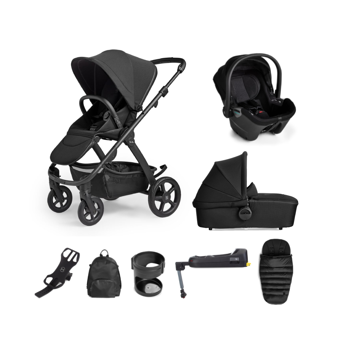 This Package Includes: Silver Cross Tide Chassis – Black Silver Cross Tide Seat Unit – Black Silver Cross Tide Carrycot – Black Silver Cross Dream Car Seat Adapters Silver Cross Dream i-Size Car Seat Silver Cross Dream i-Size Car Seat Base Silver Cross Footmuff Silver Cross Changing Rucksack Silver Cross Phone Holder Silver Cross Cup Holder Silver Cross Tide 3in1 Pram System The Silver Cross Tide is a 3-in-1 pram with a newborn-ready carrycot, pushchair seat which can be used in parent and world-facing modes and chassis. Designed for everyday adventures, Tide is suitable to stroll from birth to beyond, with everything you need for those family days out. Ready to go from day one, Tide includes an overnight sleeping approved carrycot with a bamboo soft-touch lined mattress for comfort during every stroll, stretch or nap. The air mesh ventilation panel and UPF50+ outer will keep them cool on warmer days. As your little passenger grows, switch them from facing you to facing the world with Tide?s reversible, multi-recline pushchair seat. The extendable hood, ventilation panel and UPF50+ sun protection create the perfect shaded spot, whilst the adjustable calf support offers comfort for growing legs. For ease whilst out and about, the seat features Silver Cross? magnetic Genius TM buckle and cushioned, coordinating harness pads. For those family adventures, Tide has multi-terrain wheels that you can always rely on ? whether you?re strolling city streets or off-roading. Dynamic 4-wheel suspension ensures a smooth, bump-free ride no matter where you go and the large under seat basket has stacks of storage for carrying baby?s essentials. The contemporary jersey fabrics perfectly complement the pram?s chassis, with a choice of three colours to suit your style. Tide has an effortless fold for ease when storing in your car boot or travelling on public transport. It?s also lightweight and compact, saving you space at home and on the go. Features: From birth to 4 years (approx. 22