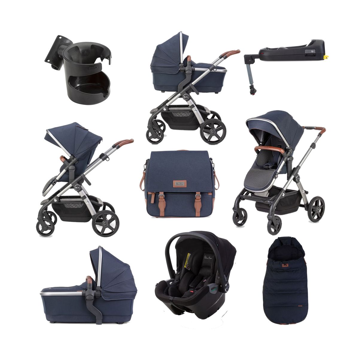 This Package Includes: Silver Cross Wave Pram System Silver Cross Dream Car Seat-Donnington Silver Cross Dream Base Silver Cross Wave Footmuff Silver Cross Wave Changing Bag Silver Cross Cup Holder Silver Cross Raincover Silver Cross Car Seat Adaptor Silver Cross Wave Pram System: The Silver Cross Wave 2020 is a beautiful and luxurious travel system which adapts to your family?s needs. It can be used as a singlepram, but if your family grows so does Wave. It?s ready to go as a double pram straight from the box, with your newborn in the carrycot and toddler in the seat above. There aremore options too if you add a tandem seat, car seat, ride-on board or second carrycot. In fact, Wave offers 30 configurations to carry one baby, siblings or twins. The Silver Cross Wave 2020 has the same strong magnesium alloy chassis but is 1kg lighter for exceptional handling and performance. New fabrics and design details provide the most beautiful and contemporary look yet. Straight out of the box, Wave 2020 offers seven configurations in single and double mode, including a patented elevation system to bring baby closer for bonding. The multi-height handle, with five positions, makes it perfect to push whatever your height. The redesigned wheels have stylish high-polish details while offering the same multi-terrain performance, never-wear tread tyres and independent suspension. Now with a convenient zip-on apron, the carrycot has a thermo-moulded ventilated base. Suitable for overnight sleeping, it can be used with the Silver Cross carrycot stand (sold separately). The multi-recline, reversible seat is lighter and wider, with an adjustable calf support, 5-pont safety harness and coordinating chest and harness pads. For optimum comfort, naturally anti-bacterial bamboo fabrics have been used for the carrycot interior and reversible seat liner. Separate hoods are provided for the carrycot and seat, both offering UPF50+ protection, a pop-out visor and ventilation. The Wave 2020 collection