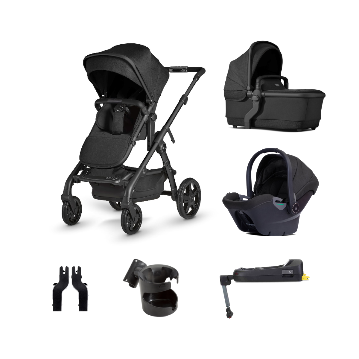 Package Includes: Silver Cross Wave Onyx Pushchair Silver Cross Wave Onyx Carrycot Silver Cross Dream i-Size Onyx Car Seat Silver Cross Dream i-Size Base Silver Cross Wave i-Size Seat Adaptors Silver Cross Cup Holder Silver Cross Wave Onyx Pushchair Introducing the all-new Wave, Silver Cross? future-proof travel system designed for growing families. Whether you?re strolling with a newborn or siblings, Wave?s flexible design is ready to go as a single or double pram straight out of the box. Offering longevity for growing families, Wave lets you choose from 7 configurations straight from the box. To bring the baby closer, or to make room for a second carrycot, it has a patented seat elevation system so you can place your carrycot or pushchair seat in the higher position for easy access and better interaction. If you?re expecting twins or have older children, Wave can be used in 30 configurations from newborn to approx. 4 years old. Just add a tandem seat, second carrycot, infant carrier or ride-on board (all sold separately) and tailor Wave to suit you. Wave?s sophisticated design is helping safeguard the future of the next generation by using sustainable fabrics crafted from recycled plastic bottles, plus fully recyclable outer packaging. As they grow, switch them over to Wave?s multi-recline pushchair seat which can be used in both parent and forward-facing modes. Wave also includes the magnetic Genius? buckle which fits together in three simple clicks, and a one-motion, rucksack-style, padded harness that?s super comfortable for a baby. To encourage independent eating on the go, the new bumper bar is compatible with the Silver Cross snack tray (sold separately). Features: Suitable from birth to 4 years (approx. 22kg) Single to double straight out the box Robust design to carry up to 3 little passengers Sustainable fabrics made from plastic bottles Hassle-free magnetic Genius? harness for added baby comfort and ease of use for parents Car seat compatible for added c