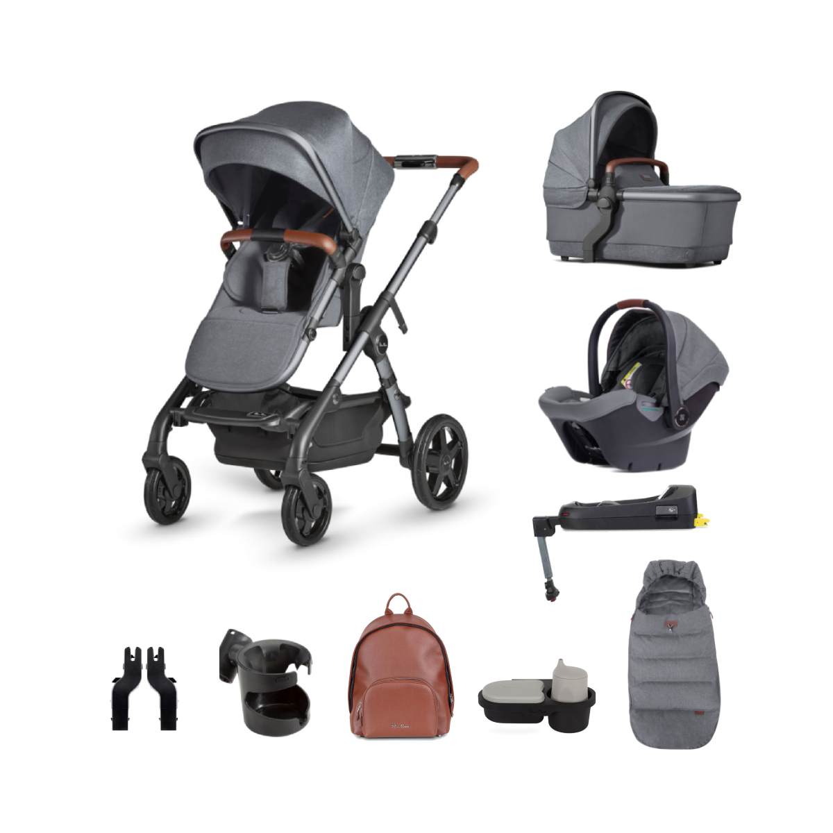 Package Includes: Silver Cross Wave Lunar Pushchair Silver Cross Wave Lunar Carrycot Silver Cross Dream i-Size Lunar Car Seat Silver Cross Dream i-Size Base Silver Cross Wave i-Size Seat Adaptors Silver Cross Vegan Leather Changing Rucksack Silver Cross Winter Lunar Footmuff Silver Cross Attachable Snack Tray Silver Cross Mobile Holder Silver Cross Cup Holder Silver Cross Wave Lunar Pushchair Introducing the all-new Wave, Silver Cross? future-proof travel system designed for growing families. Whether you?re strolling with a newborn or siblings, Wave?s flexible design is ready to go as a single or double pram straight out of the box. Offering longevity for growing families, Wave lets you choose from 7 configurations straight from the box. To bring the baby closer, or to make room for a second carrycot, it has a patented seat elevation system so you can place your carrycot or pushchair seat in the higher position for easy access and better interaction. If you?re expecting twins or have older children, Wave can be used in 30 configurations from newborn to approx. 4 years old. Just add a tandem seat, second carrycot, infant carrier or ride-on board (all sold separately) and tailor Wave to suit you. Wave?s sophisticated design is helping safeguard the future of the next generation by using sustainable fabrics crafted from recycled plastic bottles, plus fully recyclable outer packaging. As they grow, switch them over to Wave?s multi-recline pushchair seat which can be used in both parent and forward-facing modes. Wave also includes the magnetic Genius? buckle which fits together in three simple clicks, and a one-motion, rucksack-style, padded harness that?s super comfortable for a baby. To encourage independent eating on the go, the new bumper bar is compatible with the Silver Cross snack tray. Features: Suitable from birth to 4 years (approx. 22kg) Single to double straight out the box Robust design to carry up to 3 little passengers Sustainable fabrics made from plastic