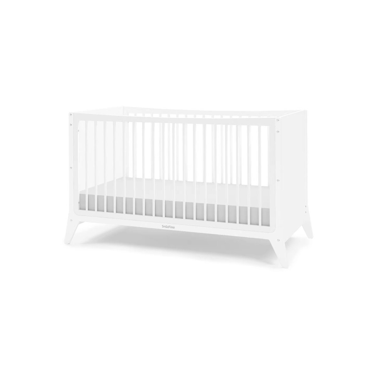 Discover true contemporary style with the Snuz Fino Cot Bed. The Snuz Fino Cot Bed features two mattress heights and easily converts into a toddler bed for use up to 4 years of age, with a unique arched canopy and toddler rails for extra security as they sleep. The Snuz Fino Cot Bed is designed with 2 mattress heights to see your little one through their first 18 months, as they grow and learn to sit upright unaided. Create the ultimate transitional sleep space with the Snuz Fino Cot Bed Toddler Kit (available separately). Complete with specially designed toddler rails and a curvy canopy to provide a sense of security for your little one as they sleep. Striking and unique, the Snuz Fino canopy adds a stylish touch to any contemporary nursery. Add the finishing touches to your little one?s sleep space with our range of baby bedding sets. Designed to pair beautifully with our nursery furniture, shop our range of colourful designs today. Features: From birth to 4 years (separate toddler kit) Minimal and understated in true contemporary style Coordinates with the Snuz Fino Changing Unit and Wardrobe Compatible with the Snuz Surface Mattress (size: 70 x 140cm) Converts to toddler bed Dimensions: External Size: W153 x L74 x H88. 5cm Unit Weight: 31. 5kg