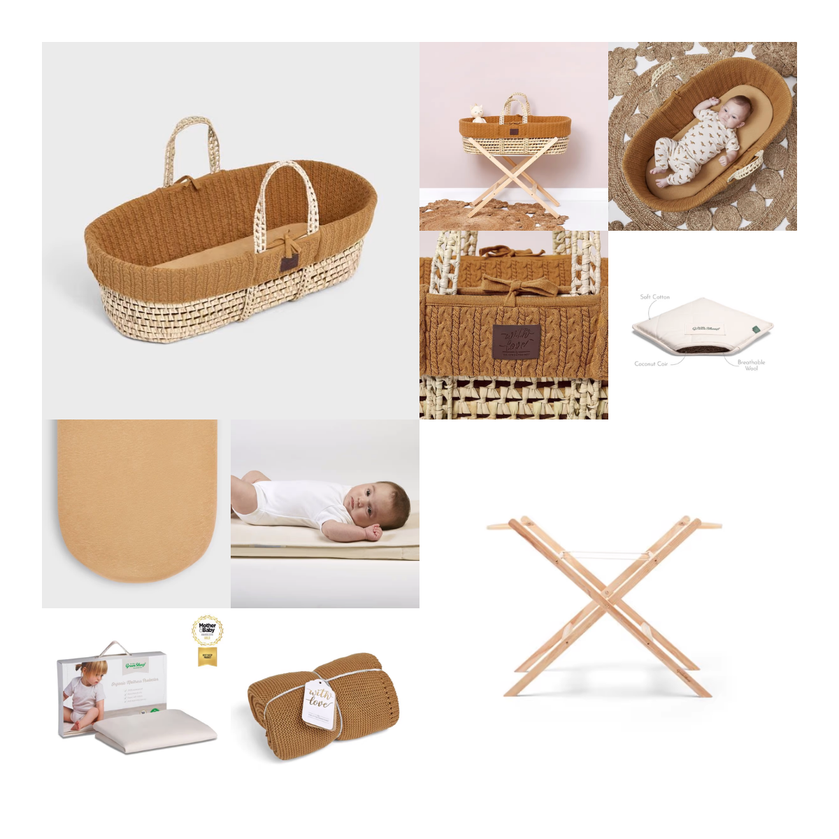 Package Includes: The Little Green Sheep Natural Knitted Moses Basket The Little Green Sheep Moses Basket Stand The Little Green Sheep Moses Basket Mattress The Little Green Sheep Moses Basket Fitted Sheet The Little Green Sheep Mattress Protector The Little Green Sheep Knitted Cellular Blanket This beautiful Moses Basket bundle is a perfect money saving package to ensure your little one is cosy from day one, including the Natural Knitted Moses Basket in your choice of colour with chemical-free mattress, moses basket stand. Little Green Sheep Natural Knitted Moses Basket & Mattress The 100% organic Little Green Sheep Natural Knitted Moses Basket helps to provide safe and comfortable sleeping surroundings for your newborn. This moses basket comes complete with a luxurious chemical-free mattress that has been exquisitely produced and designed to support baby straight from birth. The basket itself boasts natural palm leaf and is perfectly lightweight for carrying round the home and a more resilient moses basket than other Maize baskets on the market. The organic cable knit liner is incredibly soft and breathable to promote healthy air circulation and ensure your little one is comfortable. Features: Includes chemical-free mattress worth £40 Suitable from birth until approx. 3 to 4 months (or until your baby can sit up unaided) Maximum child weight: 9kg Luxurious natural palm leaf Lightweight basket for easy carrying Stunning organic cable knitted liner Machine washable cover (30°C) 100% Palm Basket 100% Certified Organic Cotton lining Dimensions: Size: L84 x W44cm Complies with British Standards BS EN 1466 The Little Green Sheep Moses Basket Stand The Little Green Sheep Moses Basket Stand is a great addition to your moses basket. There are wooden retaining bars to hold the moses basket in position securely and the stand elevates your baby to a perfect height so that you keep an eye on them beside your bed. It is suitable for use not only with the Little Green Sheep mose
