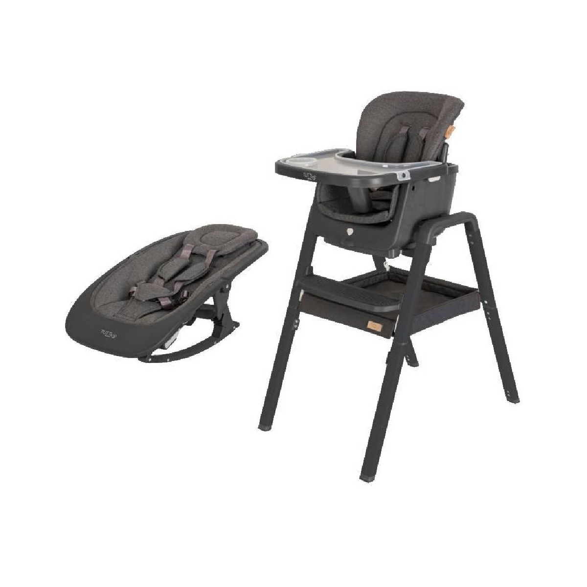 This Package includes Tutti Bambini Nova Evolutionary Highchair Tutti Bambini Nova Rocker Tutti Bambini Nova Evolutionary Highchair Meet Nova!Designed to nurture that special relationship between parent and baby, Tutti Bambini Nova is the ultimate evolutionary highchair with multiple functions. Whether you?re looking for a rocker for baby, a highchair for weaning, or mini table with chair for playtime, Nova has it all in one clever system!This Nova highchair features 7 modes designed to grow with your child. Add on the Nova newborn Rocker to benefit from all 11 modes taking you from birth to 12 years approximately1. Newborn Rocker – only when used with the Nova Highchair (available separately) Need a little help to rock baby off to sleep? Whether you?re relaxing or even doing chores around the house, our rocker is here to help. Use Nova baby seat with detachable rockers directly on the floor to calm and soothe. Designed to evenly distribute weight and gently sway, this seat will keep baby occupied. This handy rocker stows away in 60 seconds making it perfect for travelling. 2. Newborn Highchair – only when used with the Nova Highchair (available separately) Bring baby to the table from birth and involve them in everyday family life by attaching the Nova Newborn Rocker to Nova Highchair. A great option for inquisitive little ones who like to know what?s going on, this option keeps baby at an accessible level and means that they can always see where you are and join in the fun! 3. Newborn Chair – only when used with the Nova Highchair (available separately) Involve baby in family play time by giving them their own low static chair. Perfect for playing with older siblings or gurgling away with mum and dad, simply unclip the leg extensions to encourage early interaction with the family. 4. Newborn Rocking Chair – only when used with the Nova Highchair (available separately) Rock baby during sofa time in a mid-way height position by adding the rockers onto the base of the sh