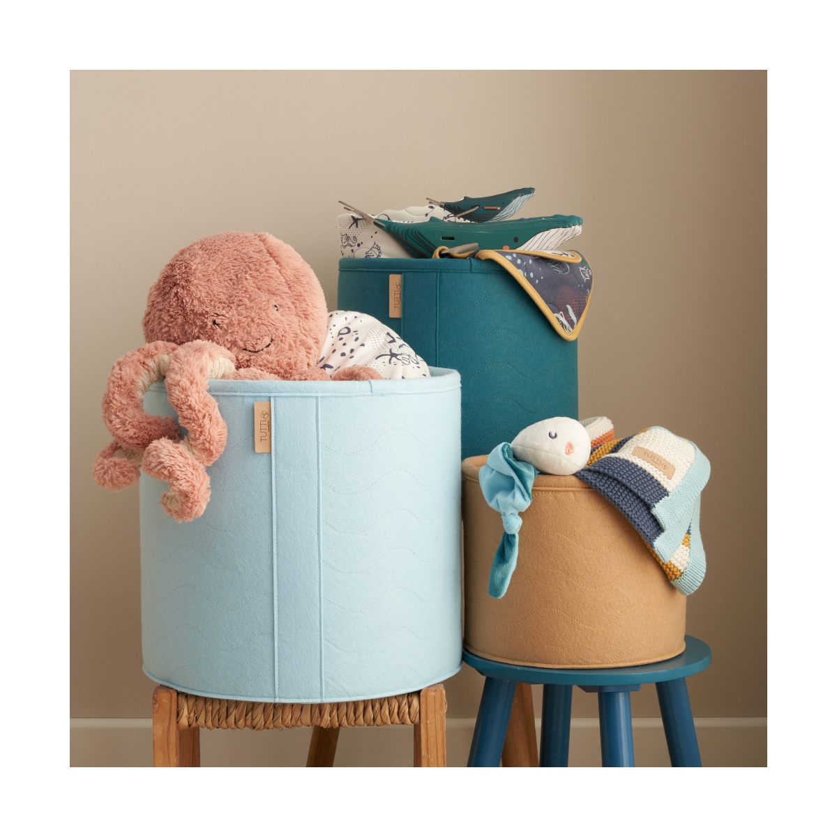 Sturdy & lightweight, with ample storage space, this set of felt nursery baskets is perfect to keep your nursery tidy, and organise all the essentials, toys, laundry, and other nursery bits and bobs. They are designed to last and easy to store away due to the stackable design. Designed to complement the sea life theme, these baskets are part of the Our Planet collection. We don’t use handles on the Tutti Bambini baskets to avoid entanglement. Features: The set includes three felt storage baskets in different sizes: small, medium, large Inject energy and aquatic magic into your child?s nursery with the Our Planet collection, bringing a nautical adventure feel through its sea creature motifs and bold colours The Our Planet storage baskets are designed in exuberant colours to carry on the aesthetic of the collection Our felt nursery storage baskets are sturdy and lightweight and have ample storage space to withhold all your toys, laundry, toiletries and any of your other baby products Our felt storage baskets have a stackable design to ensure that they do not overcrowd your space and are easy to store away Our felt storage baskets are sold as a pack of three containing small, medium and large sizing meaning that you have options of how to fill your baskets to ensure maximum storage Dimensions: Dimensions: Small ? 20 x 25 cm, Medium ? 27 x 30 cm, Large ? 32 x 35 cm
