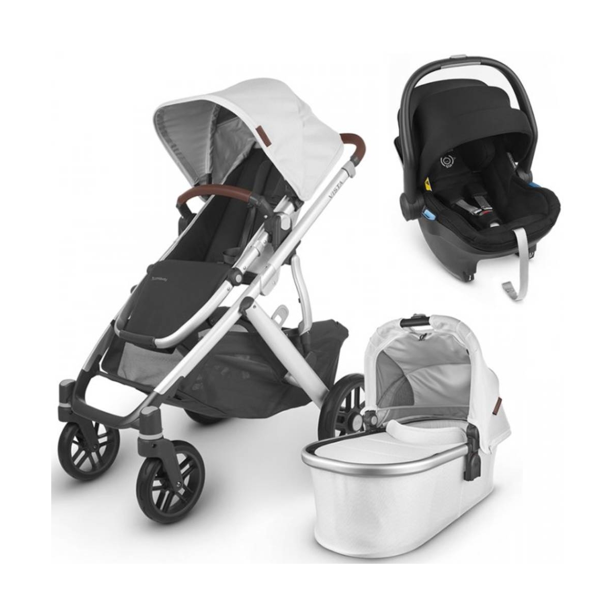 Package Includes: Vista Pushchair Vista Carrycot Mesa Infant Car Seat Vista Pushchair The UPPAbaby VISTA has an intuitive design that allows for multiple configurations, making transporting asecond and third child a breeze ? all while strolling like a single pushchair. The UPPAbaby VISTA will make travelling with your little one easy, the carrycot is ideal for sleeping and also has a reversible seat, extra large shopping basket, shock-absorbing front & rear suspension for a smooth ride, a foot push-on/off brake system and adjustable SPF 50+ sun canopy. Features: Suitable from 3 months to 50lbs (from Brith with Carrycot) Expandable seat selections that allow for two forward and parent-facing, reclining seats; two MESA infant car seats, two bassinets and countless other combinations 100% full-grain leather accents Full-size front and rear facing Toddler Seat One-handed, multi-position recline Extendable, pop out UPF 50+ sunshade Adjustable canopy and one-button telescoping handlebar One-hand release, pivoting bumper bar for easy loading Fabrics are removable and washable Shock-absorbing front and rear suspension Extra-large, easy-access basket with 30 lbs weight limit Combines aluminum with magnesium for optimal lightweight, durable performance One-step fold, with or without Toddler Seat attached, and stands when folded All-weather protection with included Toddler Seat Rain Shield and Bug Shield Dimensions: Unfolded: 91. 4 L × 65. 3 W × 100. 3 H cm Folded with seat attached: 44 L × 65. 3 W × 84. 5 H cm Folded without seat attached: 33 L × 65. 3 W × 81. 3 H cm Vista Carrycot Transform your VISTA into a pram ideal for your newborn. Whether for naps on the go or overnight sleeping, the Carrycot allows your baby to lie completely flat. Features: Suitable from birth to 9kg, Carrycot suitable for overnight sleeping Perforated mattress pad, vented base and canopy allow for added breathability Extendable pop out UPF 50+ sunshade The back of the carrycot canopy unzips for additional