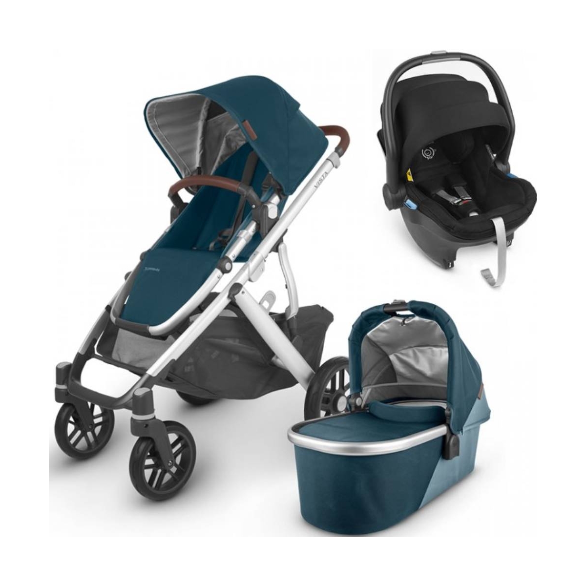 Package Includes: Vista Pushchair Vista Carrycot Mesa Infant Car Seat Vista Pushchair The UPPAbaby VISTA has an intuitive design that allows for multiple configurations, making transporting asecond and third child a breeze ? all while strolling like a single pushchair. The UPPAbaby VISTA will make travelling with your little one easy, the carrycot is ideal for sleeping and also has a reversible seat, extra large shopping basket, shock-absorbing front & rear suspension for a smooth ride, a foot push-on/off brake system and adjustable SPF 50+ sun canopy. Features: Suitable from 3 months to 50lbs (from Brith with Carrycot) Expandable seat selections that allow for two forward and parent-facing, reclining seats; two MESA infant car seats, two bassinets and countless other combinations 100% full-grain leather accents Full-size front and rear facing Toddler Seat One-handed, multi-position recline Extendable, pop out UPF 50+ sunshade Adjustable canopy and one-button telescoping handlebar One-hand release, pivoting bumper bar for easy loading Fabrics are removable and washable Shock-absorbing front and rear suspension Extra-large, easy-access basket with 30 lbs weight limit Combines aluminum with magnesium for optimal lightweight, durable performance One-step fold, with or without Toddler Seat attached, and stands when folded All-weather protection with included Toddler Seat Rain Shield and Bug Shield Dimensions: Unfolded: 91. 4 L × 65. 3 W × 100. 3 H cm Folded with seat attached: 44 L × 65. 3 W × 84. 5 H cm Folded without seat attached: 33 L × 65. 3 W × 81. 3 H cm Vista Carrycot Transform your VISTA into a pram ideal for your newborn. Whether for naps on the go or overnight sleeping, the Carrycot allows your baby to lie completely flat. Features: Suitable from birth to 9kg, Carrycot suitable for overnight sleeping Perforated mattress pad, vented base and canopy allow for added breathability Extendable pop out UPF 50+ sunshade The back of the carrycot canopy unzips for additional