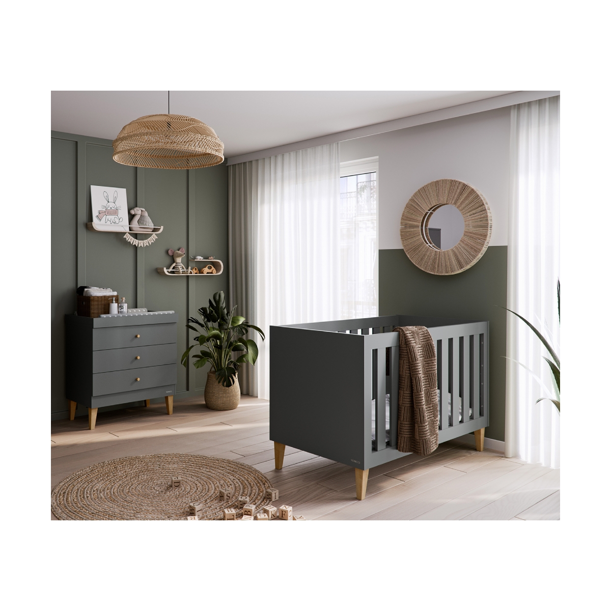Package Includes: Venicci Saluzzo Cot Bed Venicci Saluzzo Chest Venicci Saluzzo Cot Bed The crib has been designed so that it grows with the child – later you can easily turn it into a comfortable toddler bed. In addition, it has three base heights, which is an extremely ergonomic solution for parents who, especially at the beginning, bend down a lot to their babies. We also took care of the frame that guarantees proper ventilation. A modern, yet simple collection in a hybrid Scandinavian style. Designed not only for babies, but for parents as well. Focused on ergonomic design, supporting the healthy development of the toddler, thanks to the solutions used. Its minimalism is conducive to allergy sufferers – the lack of unnecessary shelves reduces the deposition of dust, and thanks to the lifting obtained by the legs, you can easily clean hard-to-reach places. When you decide to buy a Saluzzo set, you buy furniture for years – the crib will be sufficient up to 4 years of age, and the highest quality of fittings and other materials will ensure its durability. Each element of this collection has been enriched with wooden legs made of varnished oak. Thanks to them, the collection becomes cozier, which supports relaxation. Features: Adjustable base height 3 different height settings to match each stage of baby?s development Grows with the child It can be converted into a toddler bed which can used up to 4 years of age Highest quality workmanship Fittings and boards used are durable and can serve for years Additional protection against mechanical damage Gain extra room for storage Paints and other elements used are non-allergenic and tested for safety for use on baby furniture Takes mattress size 140cm x 70cm Dimensions: Dimensions: H93cm x L145cm x W75cm Venicci Saluzzo Chest The Saluzzo chest of drawers has a removable changing table, which is essential equipment for new parents. Ergonomics was also considered here – placing the changing table in this place is the optim