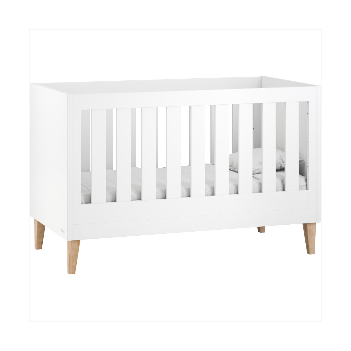 The crib has been designed so that it grows with the child – later you can easily turn it into a comfortable toddler bed. In addition, it has three base heights, which is an extremely ergonomic solution for parents who, especially at the beginning, bend down a lot to their babies. We also took care of the frame that guarantees proper ventilation. A modern, yet simple collection in a hybrid Scandinavian style. Designed not only for babies, but for parents as well. Focused on ergonomic design, supporting the healthy development of the toddler, thanks to the solutions used. Its minimalism is conducive to allergy sufferers – the lack of unnecessary shelves reduces the deposition of dust, and thanks to the lifting obtained by the legs, you can easily clean hard-to-reach places. When you decide to buy a Saluzzo set, you buy furniture for years – the crib will be sufficient up to 4 years of age, and the highest quality of fittings and other materials will ensure its durability. Each element of this collection has been enriched with wooden legs made of varnished oak. Thanks to them, the collection becomes cozier, which supports relaxation. Features: Adjustable base height 3 different height settings to match each stage of baby?s development Grows with the child It can be converted into a toddler bed which can used up to 4 years of age Highest quality workmanship Fittings and boards used are durable and can serve for years Additional protection against mechanical damage Gain extra room for storage Paints and other elements used are non-allergenic and tested for safety for use on baby furniture Takes mattress size 140cm x 70cm Dimensions: Dimensions: H93cm x L145cm x W75cm