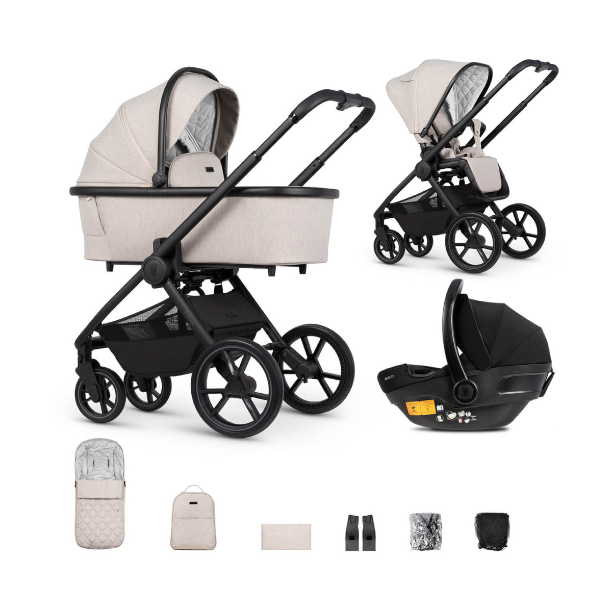 This Package Includes: Venicci Tinum Edge Stroller Venicci Tinum Edge Carrycot Venicci Engo I-size Car Seat Car Seat Adapters Rain Cover Insect Net Footmuff Matching Changing Bag Changing Mat Minimalistic, inspired by the beauty of nature. Discover the elegant Venicci Tinum Edge, designed to make your life easier in a stylish manner. Its subtle and precisely crafted details set it apart from others and highlight its luxurious character. The Power of Nature and Minimalism Combined – Tinum Edge An elegant choice for expectant parents who prefer more subtle designs. Tinum Edge is a new pram from the Venicci brand. Its calm, natural colours, well-matched details, and numerous reliable features make this pram stand out. Combining Style and Functionality Although Tinum Edge is more understated, its details still emphasise the stroller’s overall line. Subtle zips and a smooth handle perfectly complement the design. The adjustable harness in the pushchair, panoramic ventilation in the carrycot, UV 50-protected fabric, and solid puncture-proof wheels make everyday use easier. You will discover the remaining features on your own! Venicci Tinum Edge Chassis Wheels on the Venicci Tinum are of course puncture-free and are easy glide. Ensuring they glide over any surface with ease. There is also ALL terrain built-in suspension on the chassis and lockable swivel wheels. Additional suspension will pass its test in the most demanding terrains. Moreover, Front Wheels Support System supports the work of front wheels. Folding the Venicci Tinum could not be easier, This is all done with just the touch of one button. The spacious shopping basket makes it easy for you to nip to the shops and get all your little one’s essentials. The Venicci Chassis is super lightweight. Dimensions: Weight with wheels: 8. 1 kg Weight without wheels: 5. 5 kg Fabric: waterproof Wheels: tubeless Handle: telescopic Venicci Tinum Seat Unit The Venicci Tinum Edge Seat unit is capable of holding a 22kg Child with eas