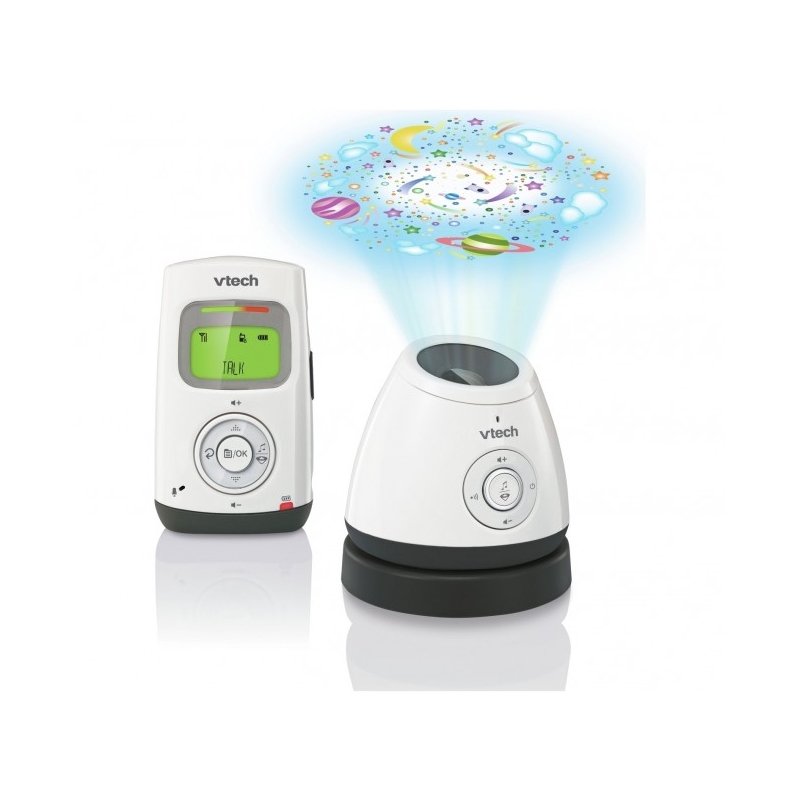 The Vtech Safe and Sound Audio Monitor is the perfect bedtime companion for your little one; it is packed with features to help soothe your baby. The Vtech Safe and Sound Audio Monitor utilise DECT signal to minimise background noise and to provide you with a crystal clear listening experience, and thanks to the 300m range, this experience can be had from anywhere in your home. 2-way talk allows you to comfort your little one, remotely while going about your day as usual and visual warning lights will alert you if the monitor detects noise. The monitor has 5 integrated lullabies and a built-in nightlight which will help to soothe and comfort your baby, the monitor also projects a starry night pattern on to the ceiling, helping your baby drift off to sleep peacefully. The unit has a built-in thermometer and will provide live feedback to your parent unit. The Safe and Sound Monitor is also fitted with a low battery indicator, meaning you will never lose connection and have plenty of warning to charge your device. Stir up your baby room with dream & fantasy. Cast the ceiling as galaxy with starry light. Features: DECT Technology Projected Nightlight Green backlit LCD display Lullaby 5 ? level sound indicator 2- Way communication Vibrating sound alert Age Range: Birth to 3 years Group: Group 0+ ECO mode Belt chip on parent unit Rechargeable battery ? included in the parent unit Dimensions: Depth: 102 MM Height: 110 MM Width: 86 MM