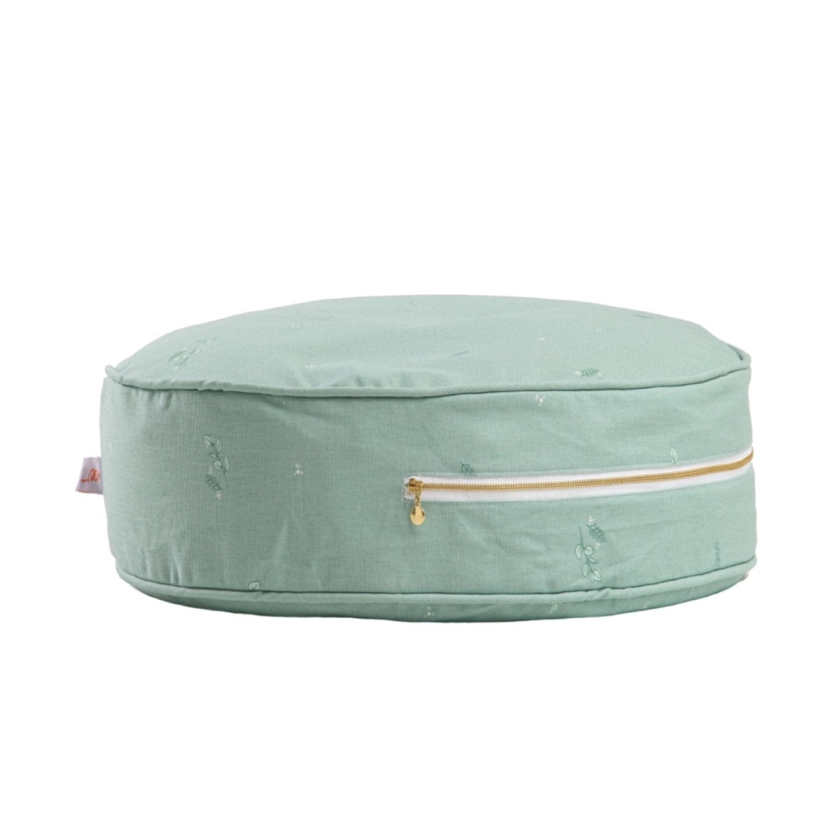 The Wigiwama Ottomans are the smart, stylish and elegant choice for adding additional seating or creating new comfortable spaces for little ones to enjoy. These soft round pouffes have matching piping to ensure they keep their shape no matter how many rooms they?re moved to or how many people can?t resist sitting on them. Thinking of everything to make this design truly elegant and luxurious, the gold detailing with the zip adds the finishing touch to this symmetrical piece. Made of STANDARD 100 by OEKO-TEX® certified materials, you can trust that these materials are safe, long-lasting and comfortable for everyone to use. The Minty Green Ottoman brings the natural freshness opening the door on a spring morning has. The classic pattern illustrates nature whilst the bright colour puts a smile on anyone?s face. With green bringing inspiration and creativity to imaginative minds this ottoman is ideal for those wanting to develop their creative minds! Features: Made in Latvia Made from Standard 100 by OEKO-TEX® (100% Cotton) EPS beads are recyclable and reusable Cover machine washable, and anti-allergenic Dimensions: Measures 55 x 20 cm