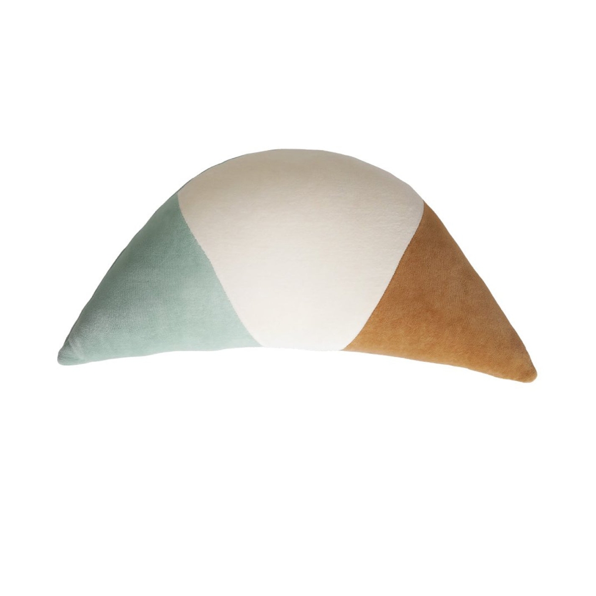 The Jade collection is inspired by the sky and cosmos. Each design has individual elements influenced and energised by specific notes from this inspiration. A delicate edit has been made to create an exclusive collection that brings natural and powerful elements to home interiors. The shapes and colours are individually chosen to bring those beautiful natural elements feeling indoors in subtle, elegant and unique ways. Made of STANDARD 100 by OEKO-TEX® Velvet, these cushions are a comfortable, soft and safe piece for any child?s space. A beautiful and simple way to bring the beautiful outdoor world in! The Wigiwama Jade Sunset Cushion is a celestial body-shaped inspired by the daily sunset. A three colour sectioned cushion in a recognisable shape, this cushion pairs beautifully with other Wigiwama pieces but also acts as a great accent or feature piece. Made of velvet, it?s super soft and a great choice for little ones to cuddle up with! Features: 80% Cotton, 10% Polyester 100% Micro Cluster fibre padding, easy to care for, lightweight, washable and hypoallergenic Machine washable! This contributes to high and effective product safety for children Made locally in Latvia with care for our planet. Dimensions: Dimensions: L58 cm x W31 cm x H10 cm